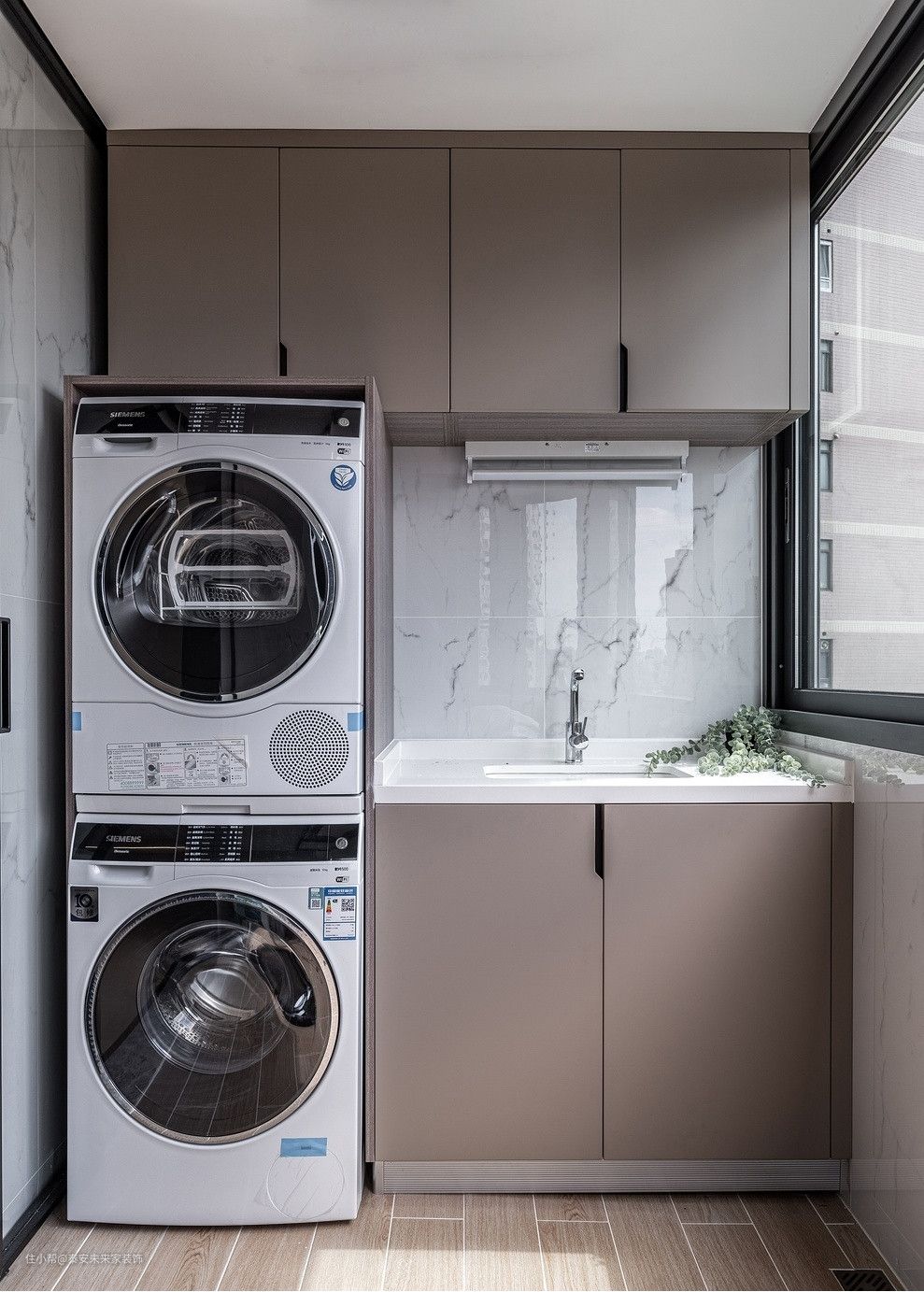 阳台是晾晒衣物最合适的空间,所以把洗衣机放在阳台,自然也是非常的实用方便。