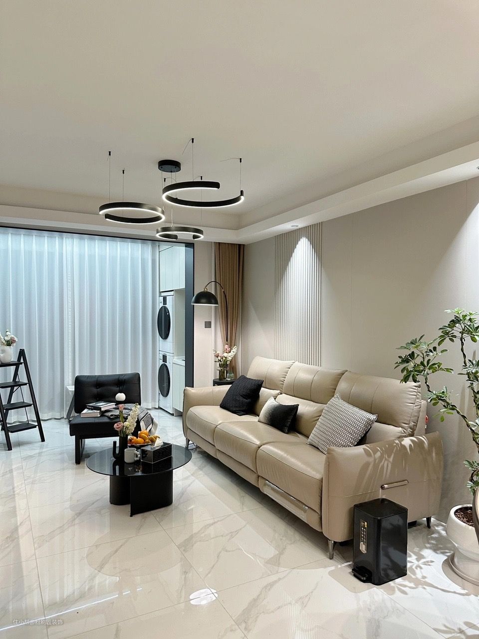 简约,不简单。在设计上,它追求空间的合理利用,每一寸空间都发挥到极致; 在材质选择上,注重天然、环保,让家更贴近自然。 打通推拉门 将阳台纳入客厅 地砖通铺从视觉上拉伸 显得空间更加宽敞明亮,玄关鞋柜延伸电视背景墙 收纳空间同时也在增加 不会担心东西没有地方收纳 嵌入式的电视 整体看起来更加平整大气 下方格栅设计增加设计感 回型吊顶 嵌入式灯带发射出灯光照射在顶面上 营造温馨的氛围感