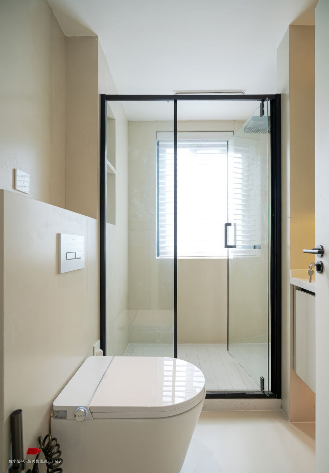 4平米的卫生间这样装真显大🤩🤩🤩🤩🤩 🍃卫生间整体极简设计+奶油色搭配,黑色淋雨室框点缀层次感,简而不简的搭配让小户型也高级显大~ · 🍃奶油色瓷砖墙地对缝铺贴,这个砖纹理细腻,通铺起来干净清爽~ · 🍃瓷砖是柔光的质感,当光线照进来反射舒适自然的光感~奶呼呼的质感我真的拒绝不了! · 🍃搭配瓷砖同色美缝剂,留缝2mm,填缝后看起来一眼平整顺滑~视觉上显得空间大了一圈~ · 🍃我们设计成极简奶油风+奶油色柔光砖,不仅耐住耐看还好打理哦!