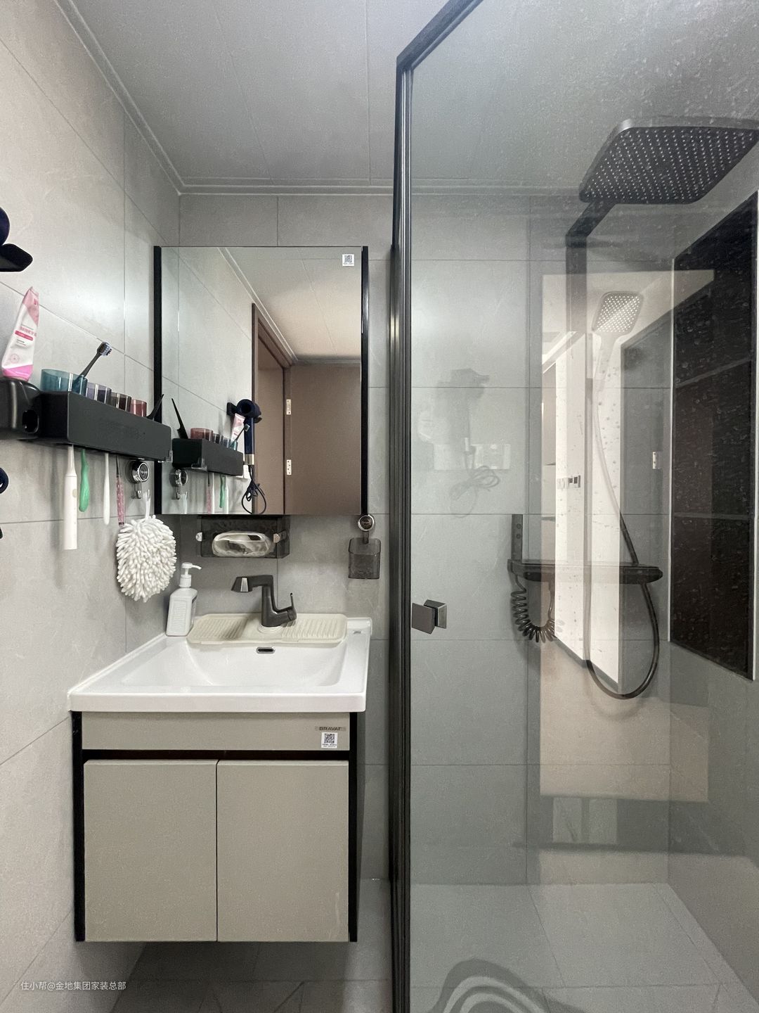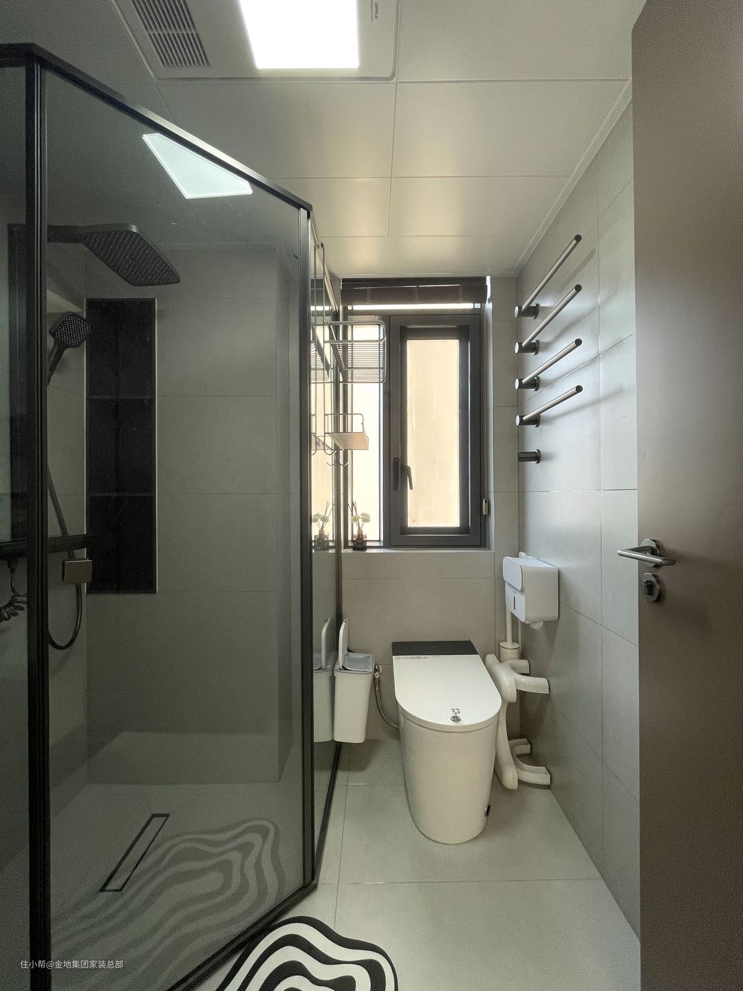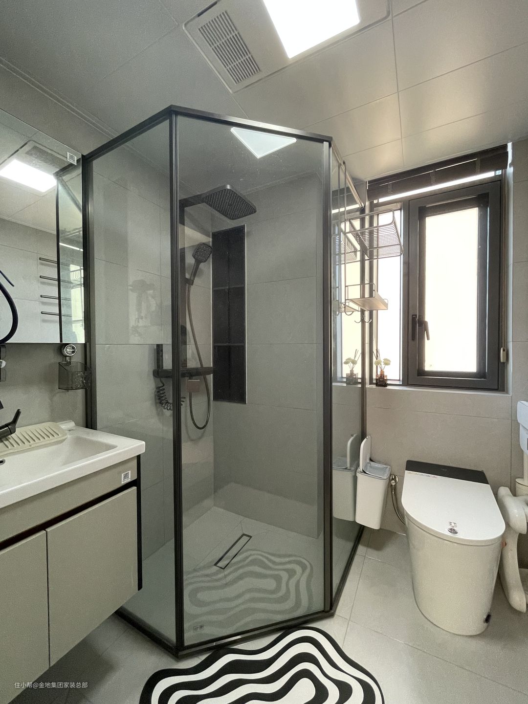 卫生间虽然不大,但利用钻石型的沐浴间布局也很好地实现了干湿分离,角落空间得到了充分的利用。独特的钻石形状,也为卫生间增添了设计感。