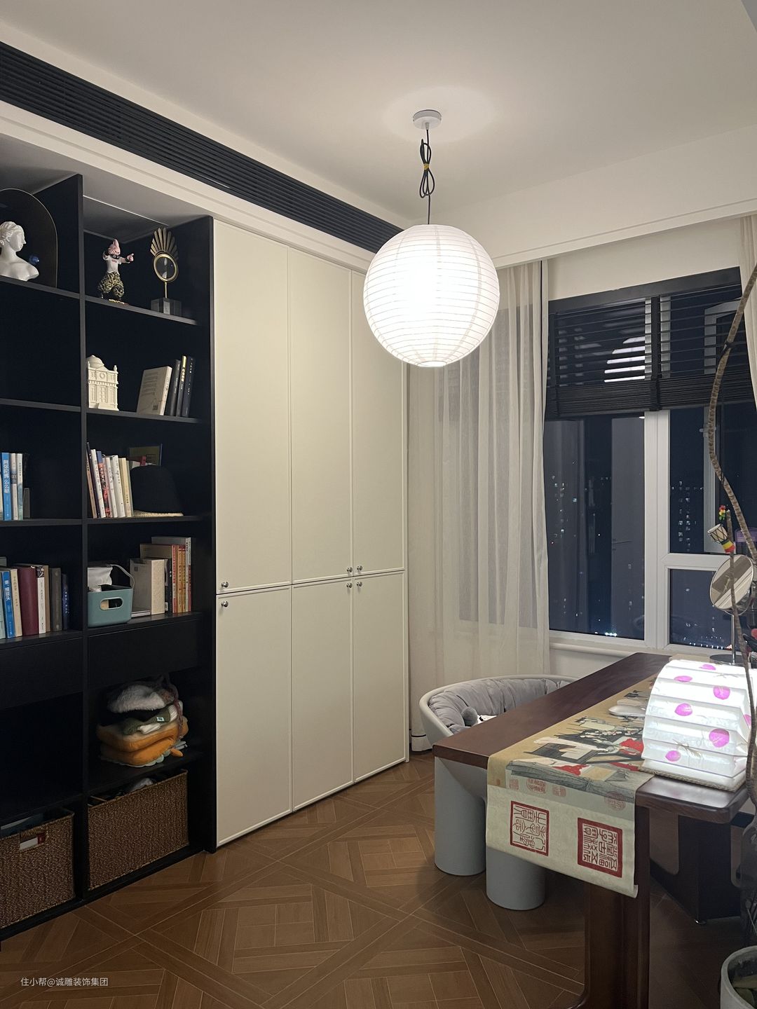 沙发背后就是书房空间,没有隔断分隔,看上去更加宽敞通透,还提升了一家人的交流互动。