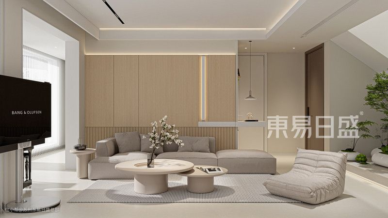 本案设计采用奶油风装修风格,用低饱和度的配色以及温润明净、柔和舒适的材质来装饰空间,从而营造出简洁、温馨的效果,治愈力满分,基础硬装部分简洁、明净,没有各种冗余的设计,但选用的材料都肌理丰富,具有十分细腻的质感,包括软装家具的选择,也是如此。