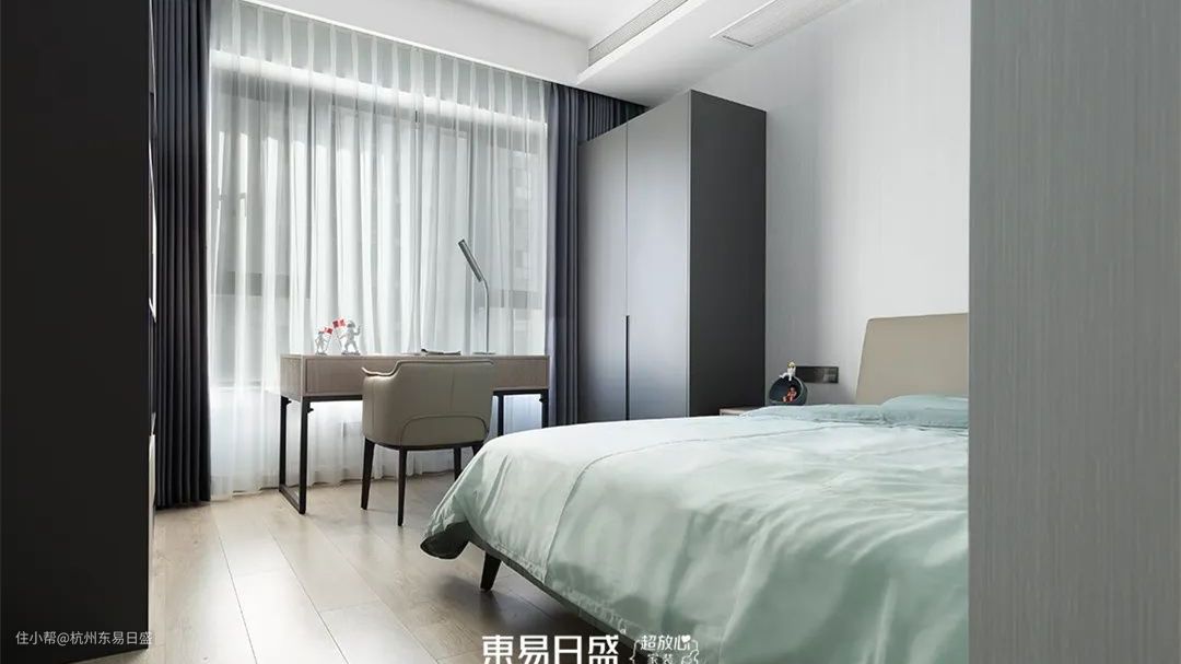 主卧是最私密的地方,简洁、大气、稳重、雅致,同时又充满现代感,让人感觉舒适而愉悦。舒适的质感和个性化的装饰让人沉浸其中。背景墙采用半墙木饰面和灯带装饰,为空间增添了独特的高级感。 从过道延伸而来的L形悬空壁柜是屋主最满意的设计之一,不仅能展示物品,还具备储物功能。悬空设计搭配灯光,不仅打破了整体的厚重感,还为生活增添了一份精致感。 衣帽间的墙壁进行了移动,设计了L形转角衣柜,上、中、下区域合理划分。可旋转的穿衣镜不仅增加了衣帽间的实用性,还增加了空间的感觉。