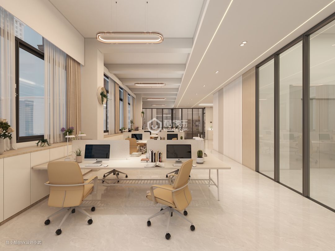 一、设计理念 我们的奶油风办公室设计,灵感源自温暖、舒适与自然的家居环境。设计理念是打造一个温馨而富有活力的办公空间,旨在缓解工作压力,激发员工的创造力与协作精神。 二、空间布局 空间布局上,我们采用开放式设计,保持空间通透与流畅。核心工作区位于中央,便于团队沟通与协作;独立办公室则分布在周边,为需要集中精力的员工提供安静的工作环境。休息区和会议区则巧妙融合,为员工提供一个放松与交流的场所。 三、色彩选择 色彩是奶油风设计的核心。以浅奶油色为主调,营造出温馨舒适的氛围。辅以白色和浅木色,营造出自然清新的感觉。局部点缀以柔和的粉色和灰色,增加空间的层次感与温度 四、照明设计 照明设计中,我们采用自然光与人工照明相结合的方式。引入大量自然光,保证室内光线的明亮与充足;同时,配置温馨舒适的灯光,营造柔和的办公环境。局部设置聚光灯和台灯,满足不同的照明需求。