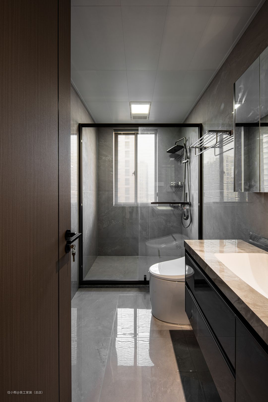 灰色系的卫生间散发出极简的气息,大理石天然流畅的纹理和上乘的质感,赋予卫浴空间高级视觉。
