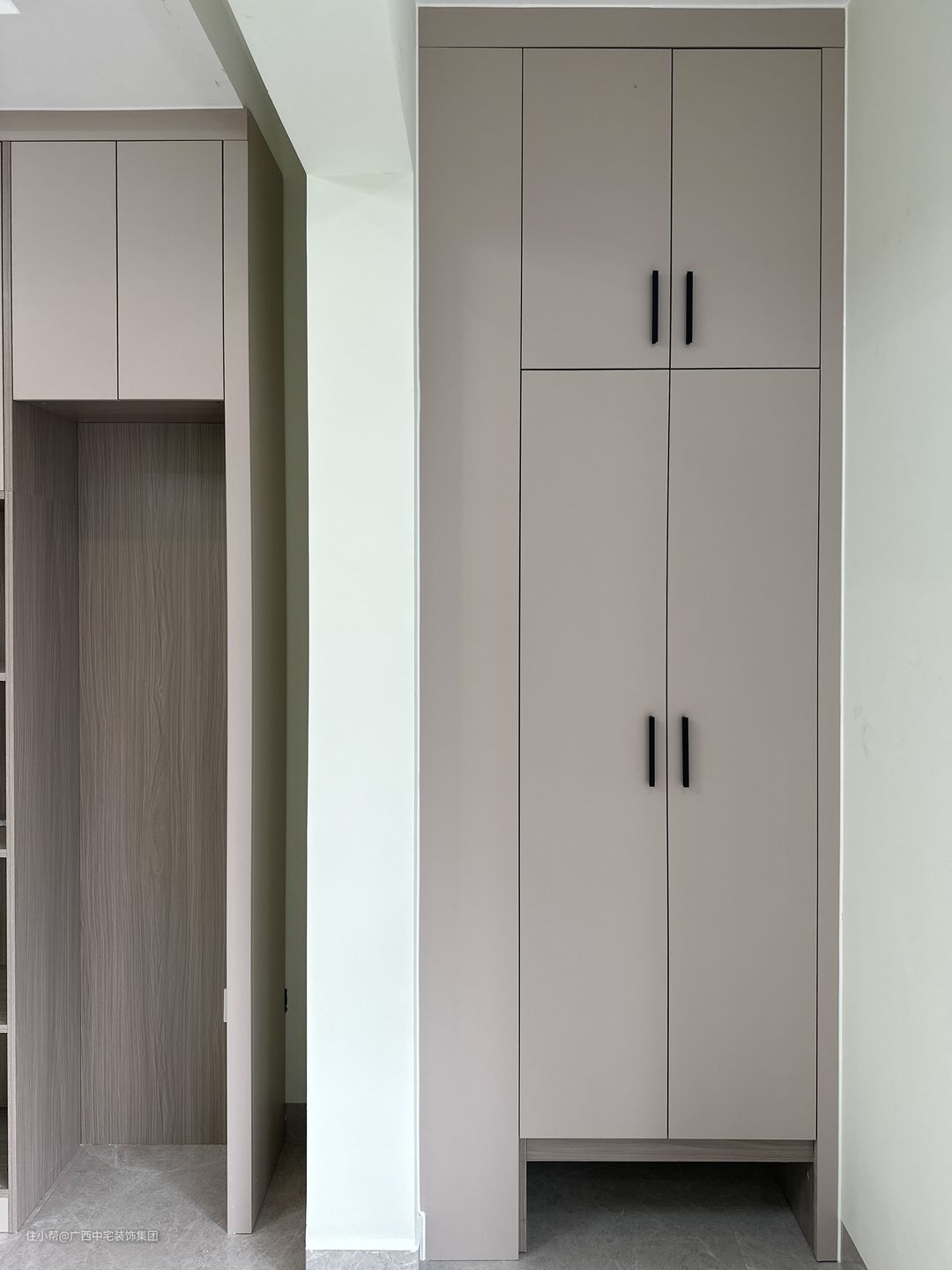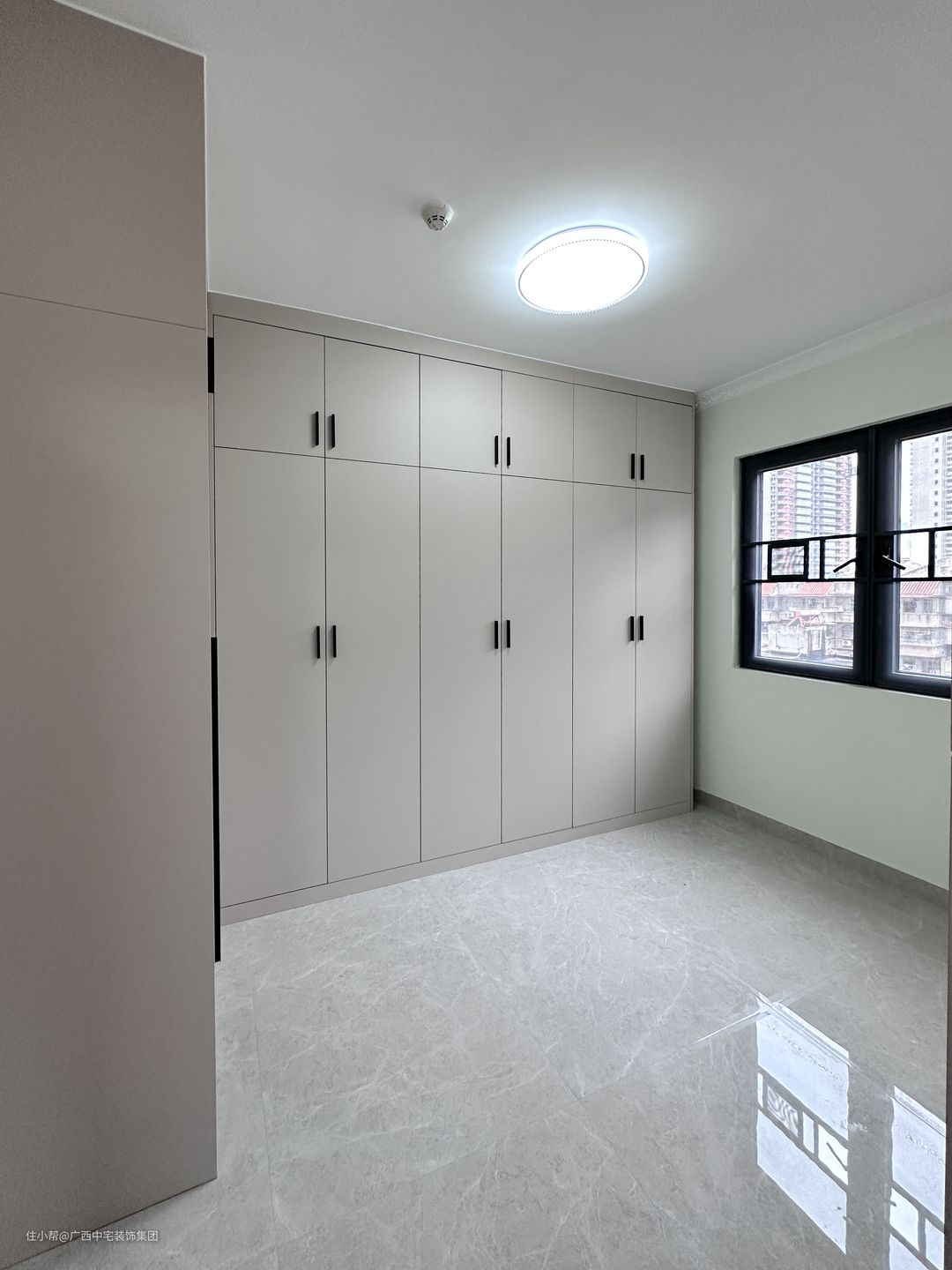 次卧L型衣柜,把储物运用到极致,合理规划空间布局,引领储物新时尚。无论是四季衣还是四季被,都能收纳其中,让整洁长相伴。圆形灯光就行一轮明月,照亮夜空,温暖我心。