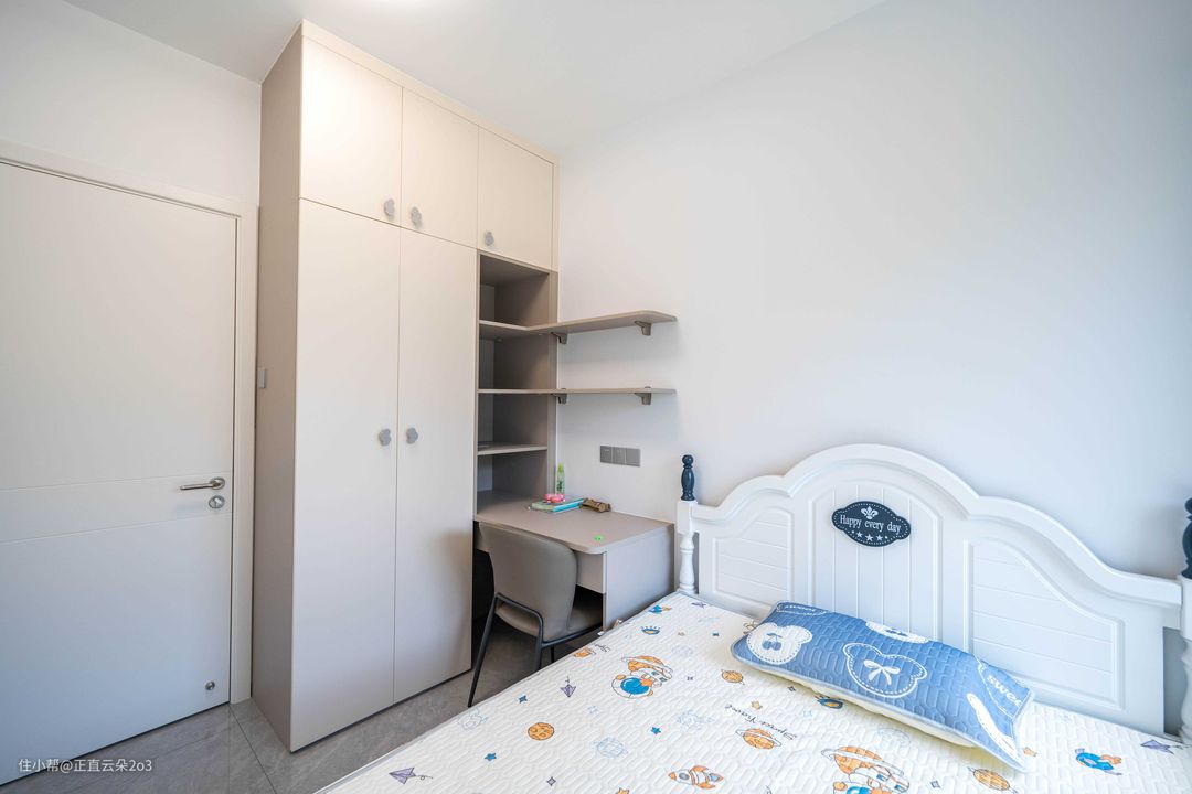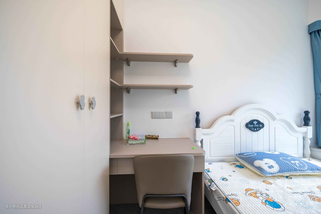 儿童房选择蓝色床,为孩子创造一个欢乐、温馨的空间。蓝色代表着自然和活力,能够给孩子带来愉悦和平静的感觉。蓝色床的选择可以是明亮而柔和的蓝色,搭配舒适的床垫和可爱的床品,为孩子提供一个舒适的睡眠环境。 飘窗的设计增加了孩子娱乐的空间,可以看到外面的景色。窗帘也用蓝色的与空间的主题相呼应。 玩具被组织得井然有序,可能通过柜子、架子或储物盒进行分类和摆放。儿童房的设计注重安全性和易于清理,以便孩子们自由地玩耍和探索,同时也能让家长们保持整洁有序的环境。