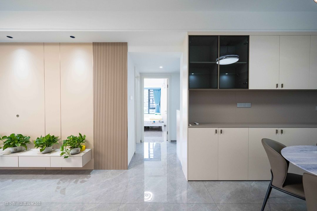 可以选择一个简约而现代的筒灯,为玄关提供明亮的光线。通过这样的设计,玄关将成为一个简约而优雅的过渡空间,为进入家中的人营造出舒适和欢迎的氛围。 玄关设计中设有一个玄关橱,为进入房屋的人提供了便利的存放衣物和物品的空间。虽然玄关不算开阔,但玄关橱的设置有效利用了空间。玄关橱设计为嵌入式,玄关橱提供充足的存储空间,整理和组织衣物、鞋子和其他物品。