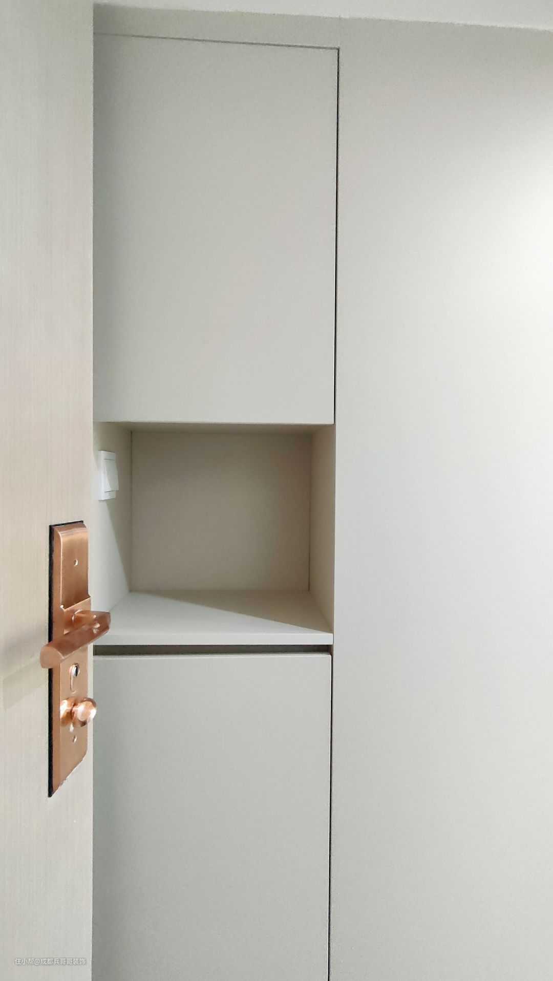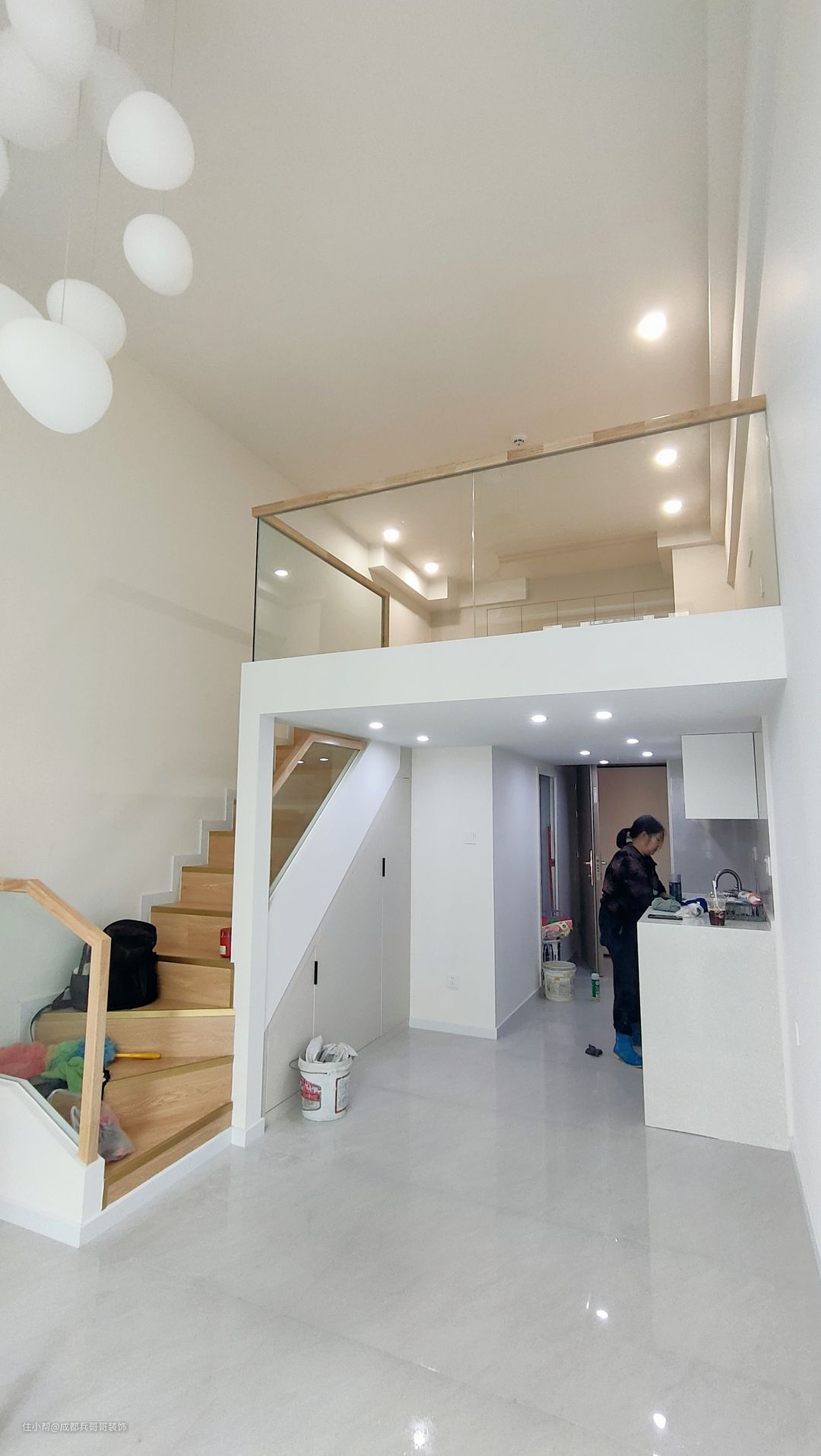 入户空间,搭建阁楼下方:左厨房、右卫生间,空间有限的情况下满足所有使用功能。