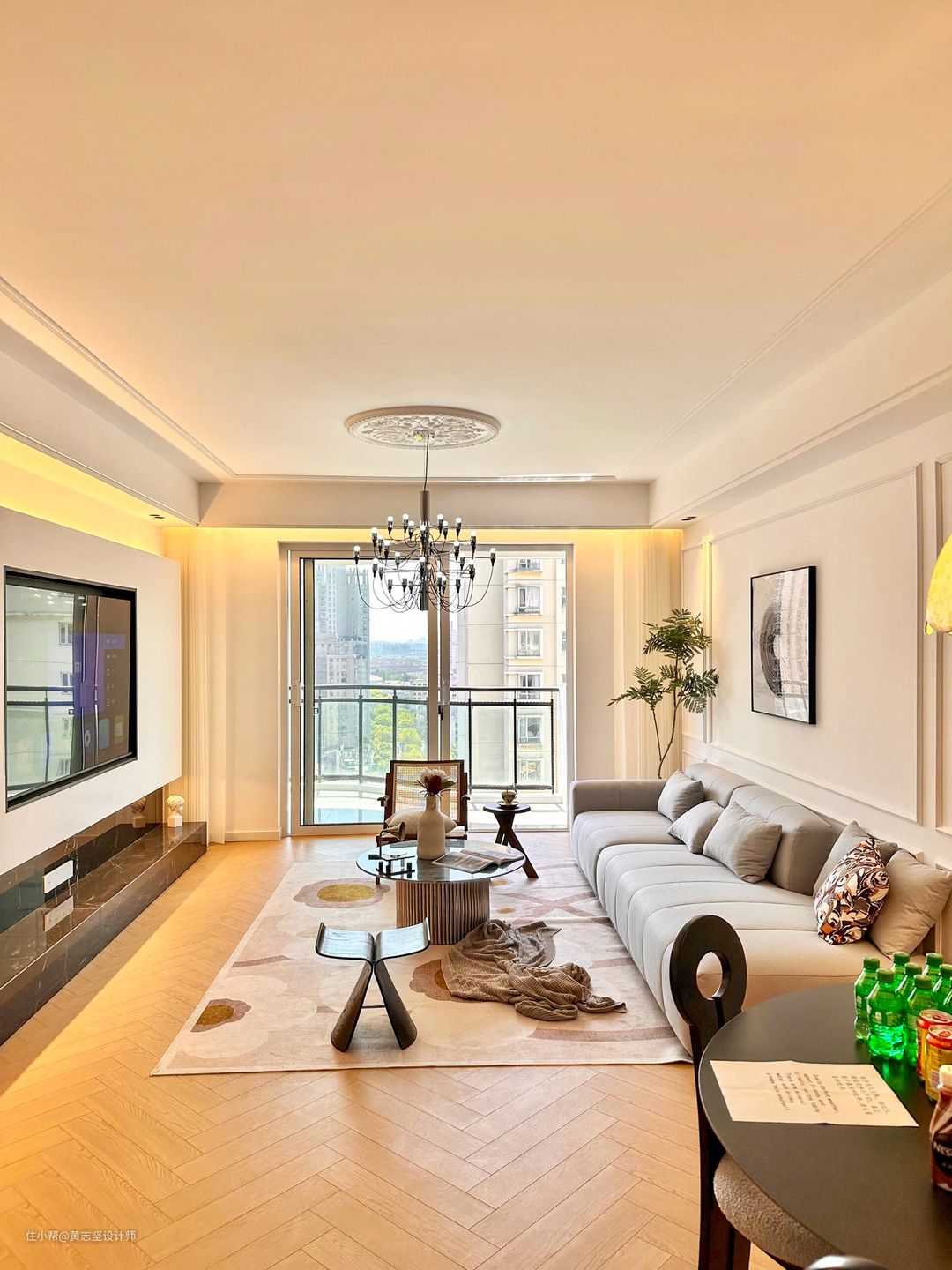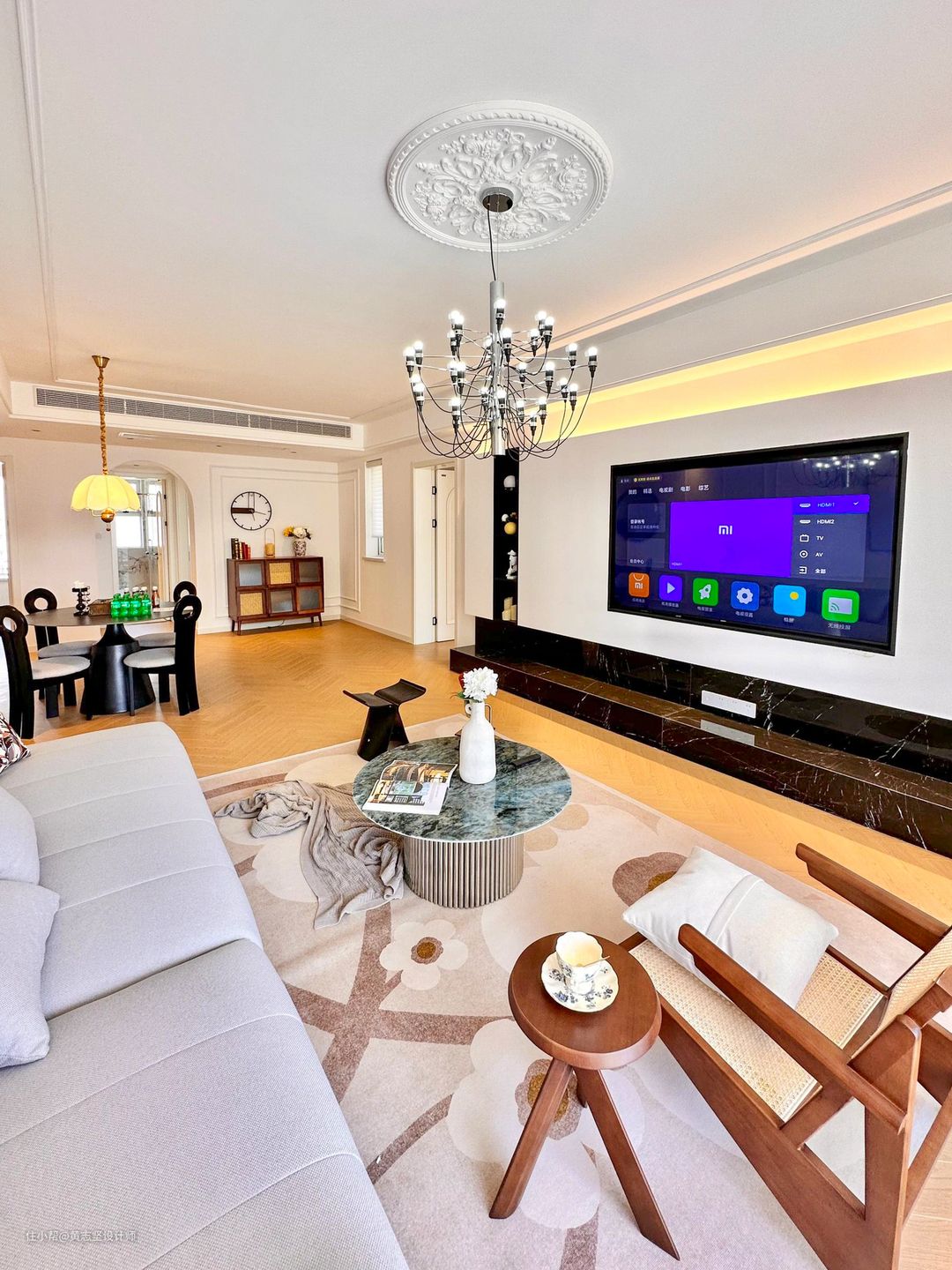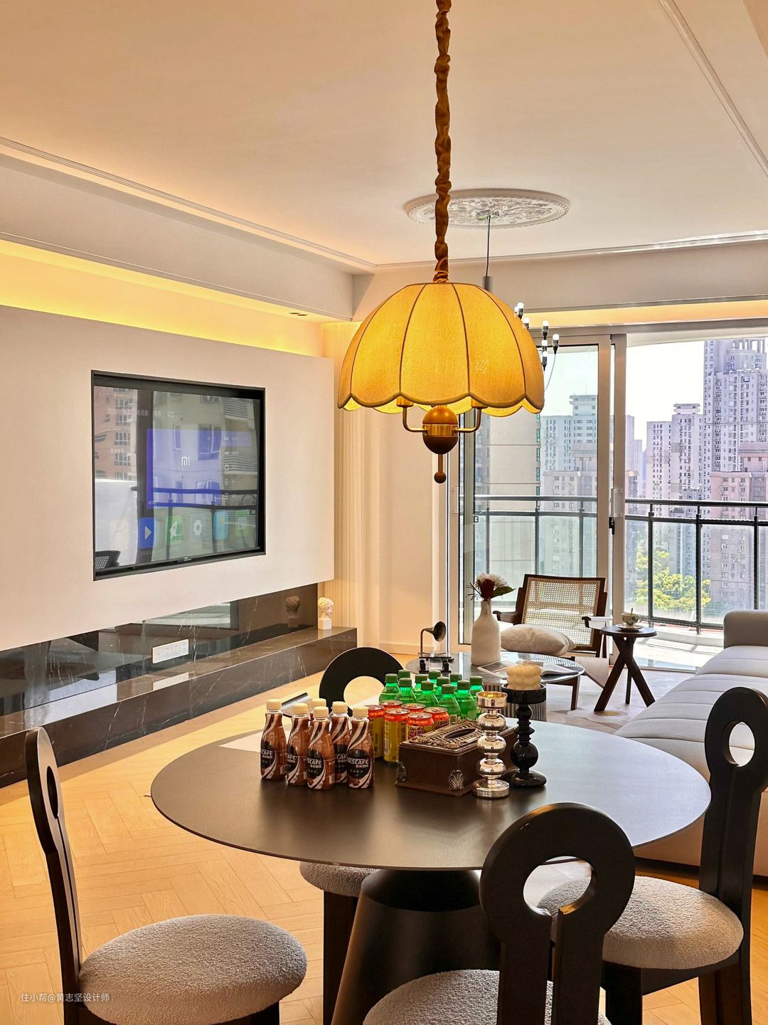 ✅打通餐厅,做成了开放式餐客一体,视觉上更开阔显大。