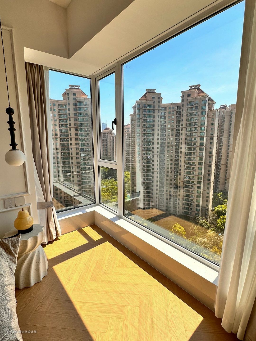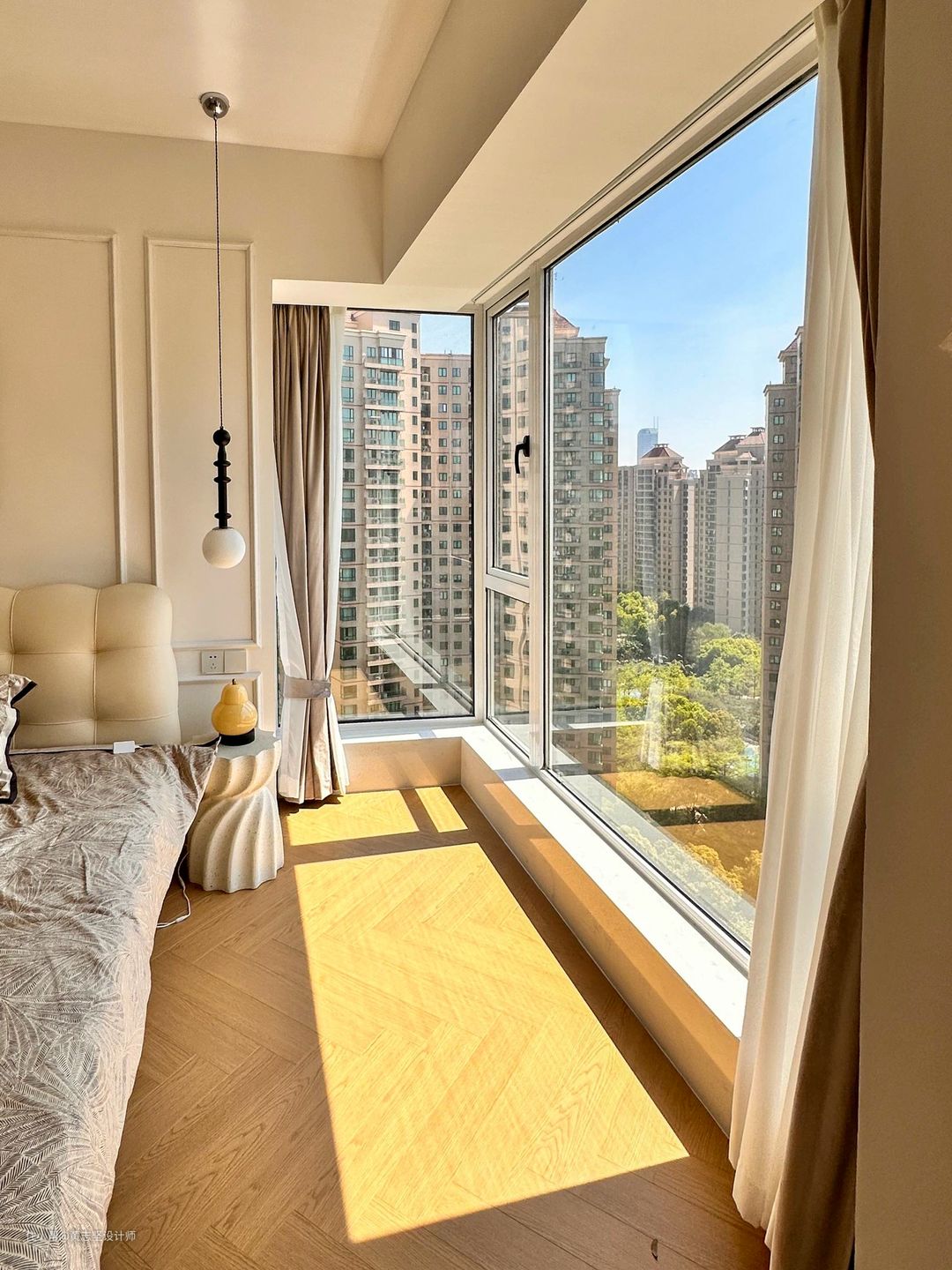 卧室的大窗户是整个空间的亮点,把外面是景色一览无遗,白天看着阳光照射进来,超级治愈🥯