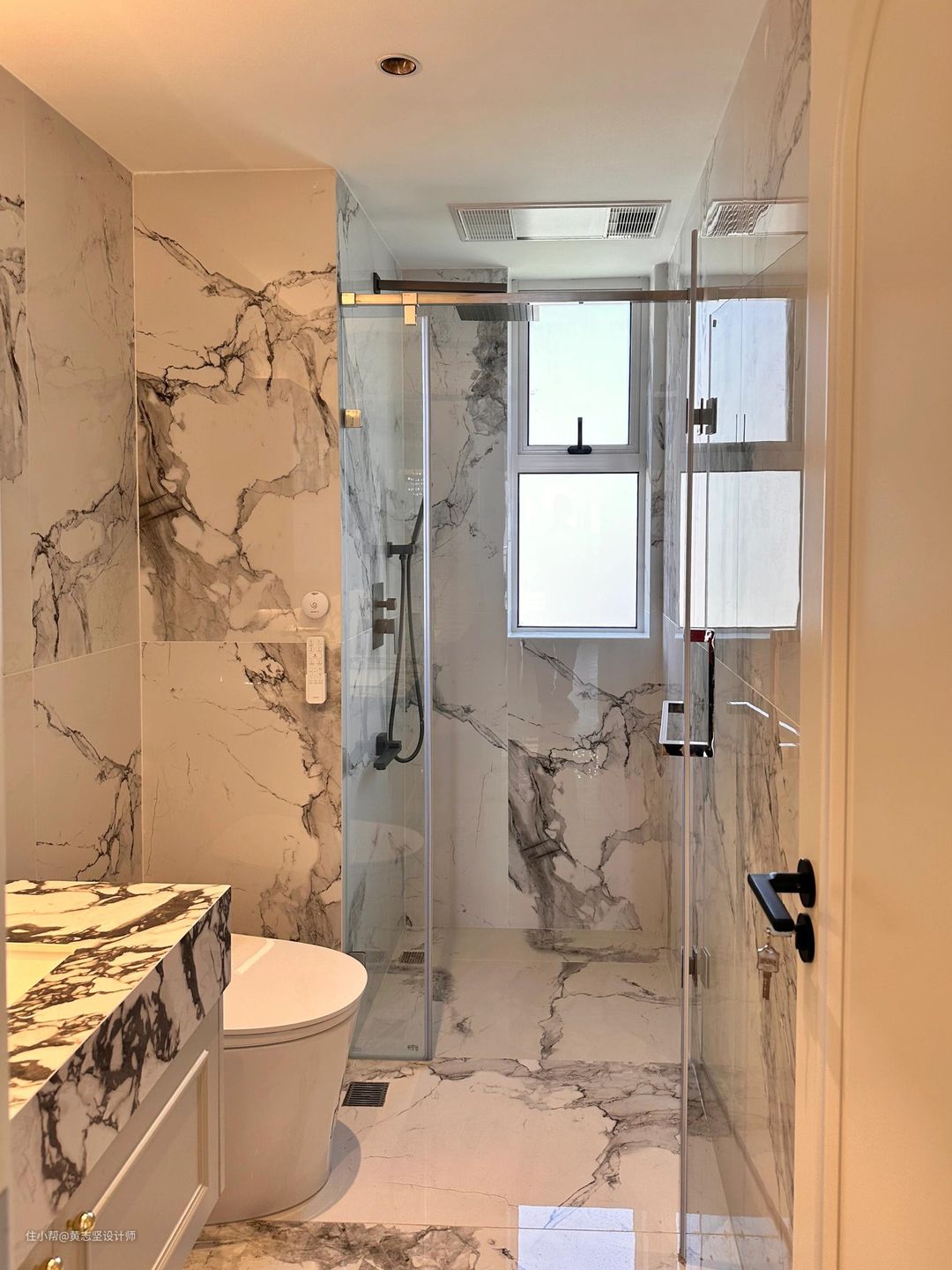 卫生间整体通铺白色大理石,整体空间明亮又gao级。👍