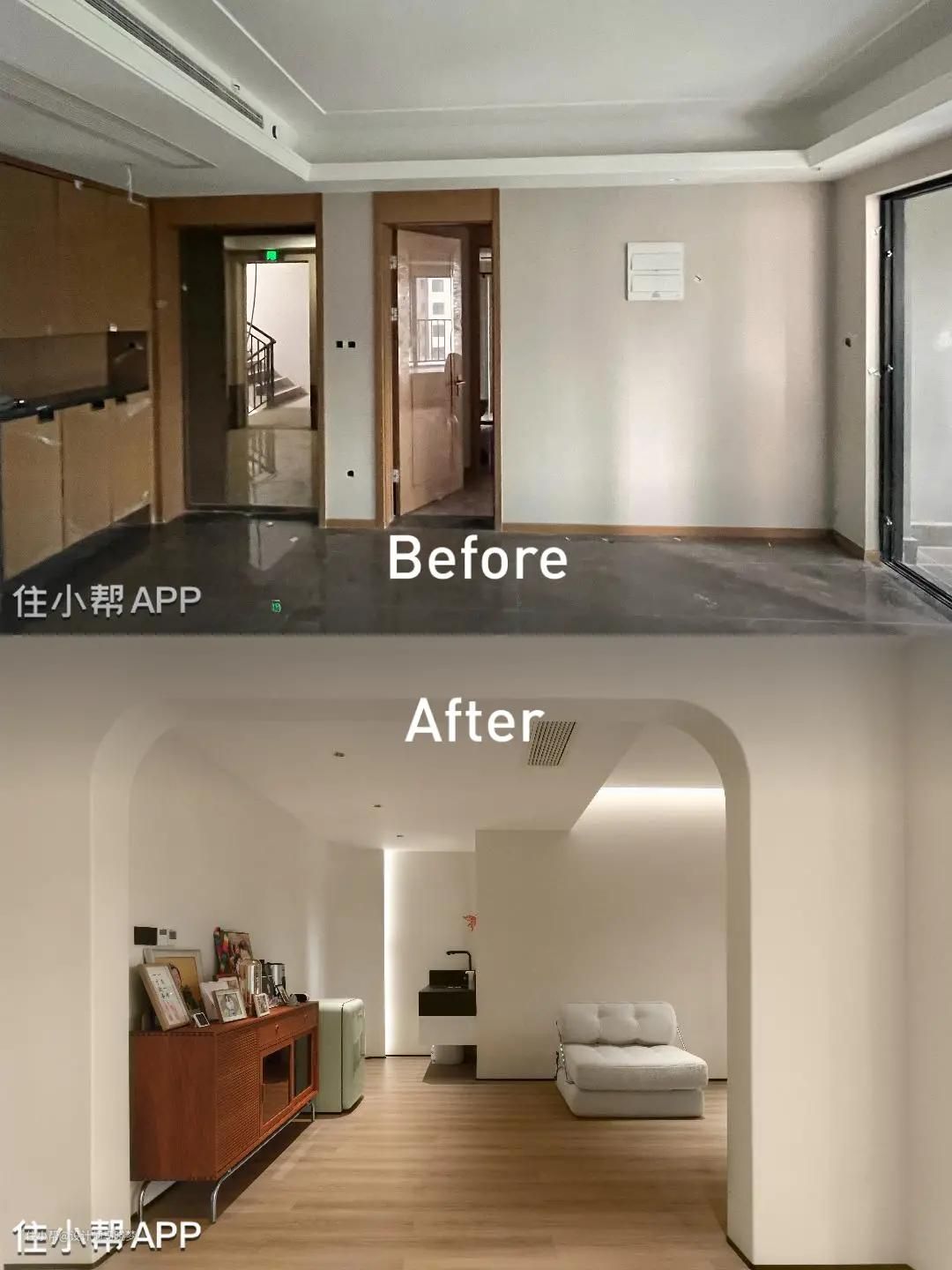 👉原来是精装房,深灰色的地砖与原有业主对家的定义不一样 👉家里面直角太多,整体空间显得不柔和 ✨每个房间的空间比较小