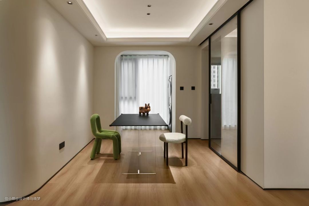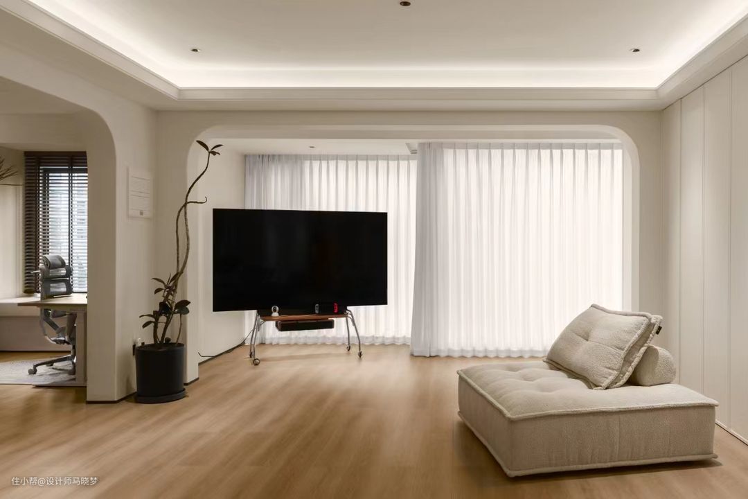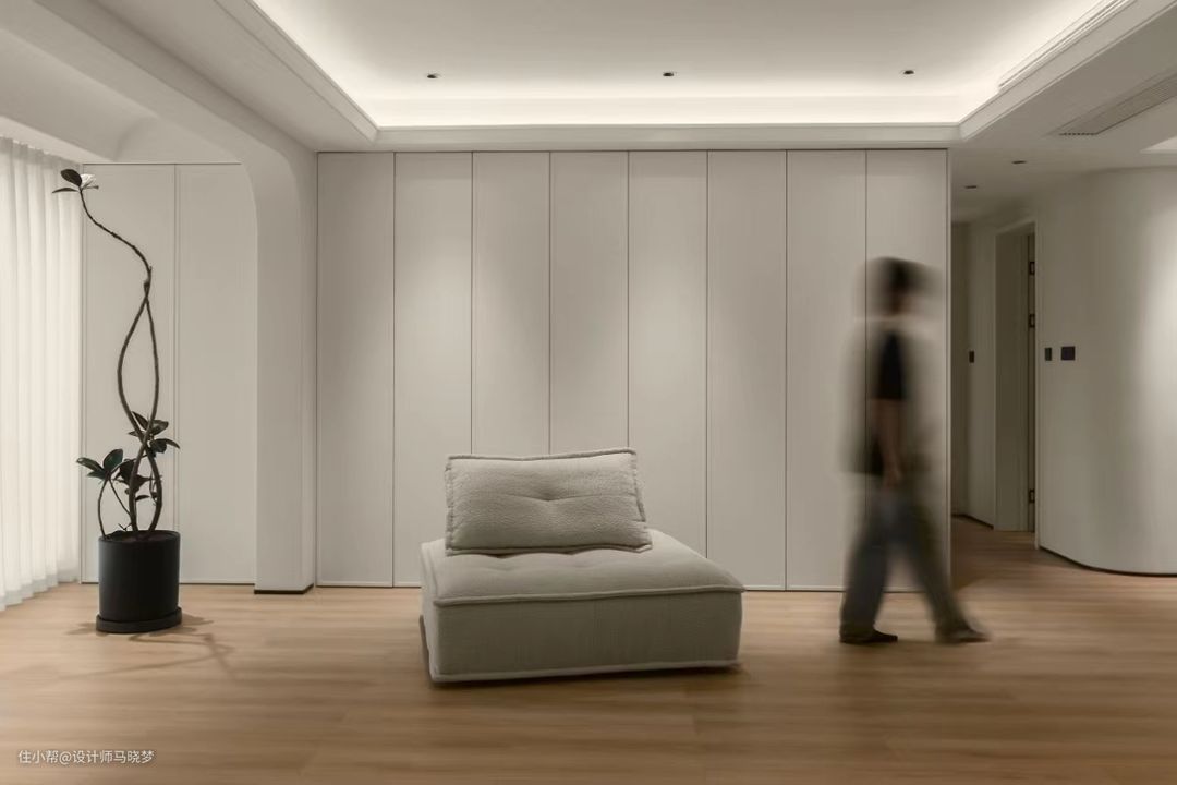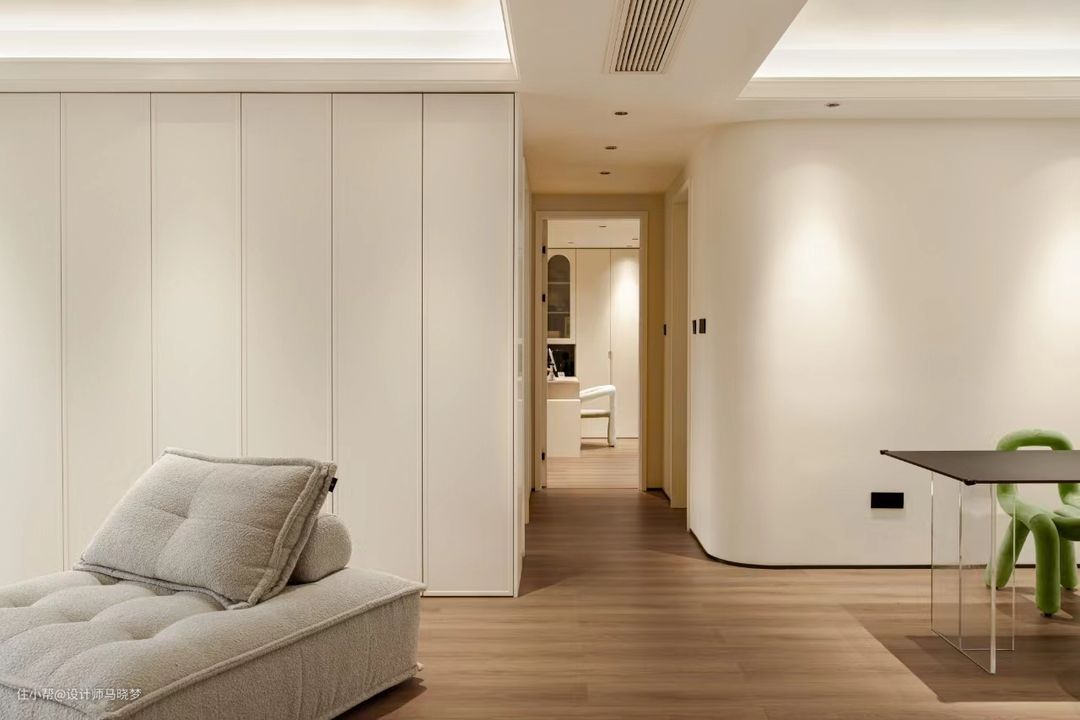 我们巧妙的运用奶油白与原木色木地板搭配,为空间营造出宽敞、通透的视觉效果。 不仅让整个空间显得温柔而治愈,还给居住者带来宁静与舒适的氛围 在软装的布置上保持了简洁的设计,能没有的话就尽量没有,给后期的空间添置增加更多的可能性,空间不一定要塞满,留白也是空间搭配的一种