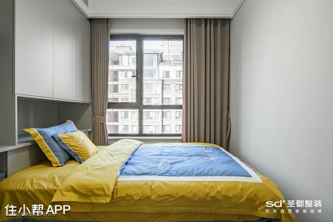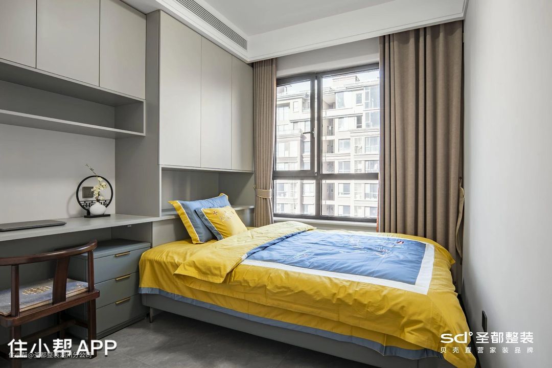 儿童房的规划,不能仅仅囿于卧室设计,还得考虑到收纳和学习。整墙收纳柜、一体式书桌一应俱全,进一步拓展儿童房的功能性。