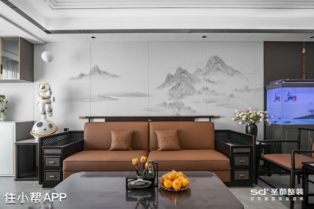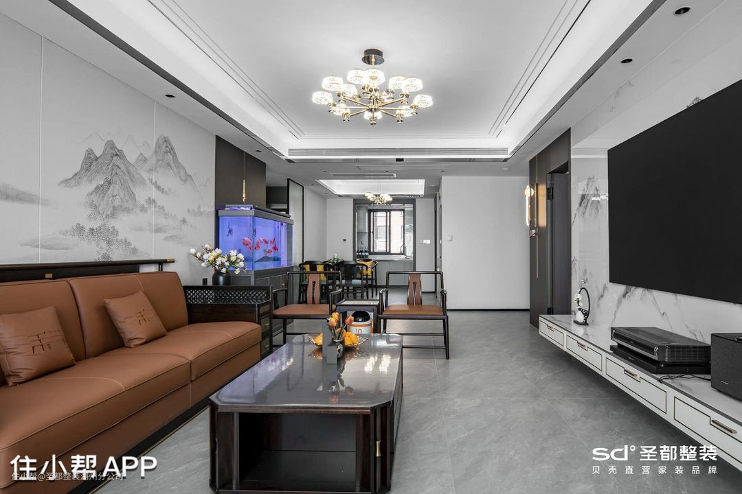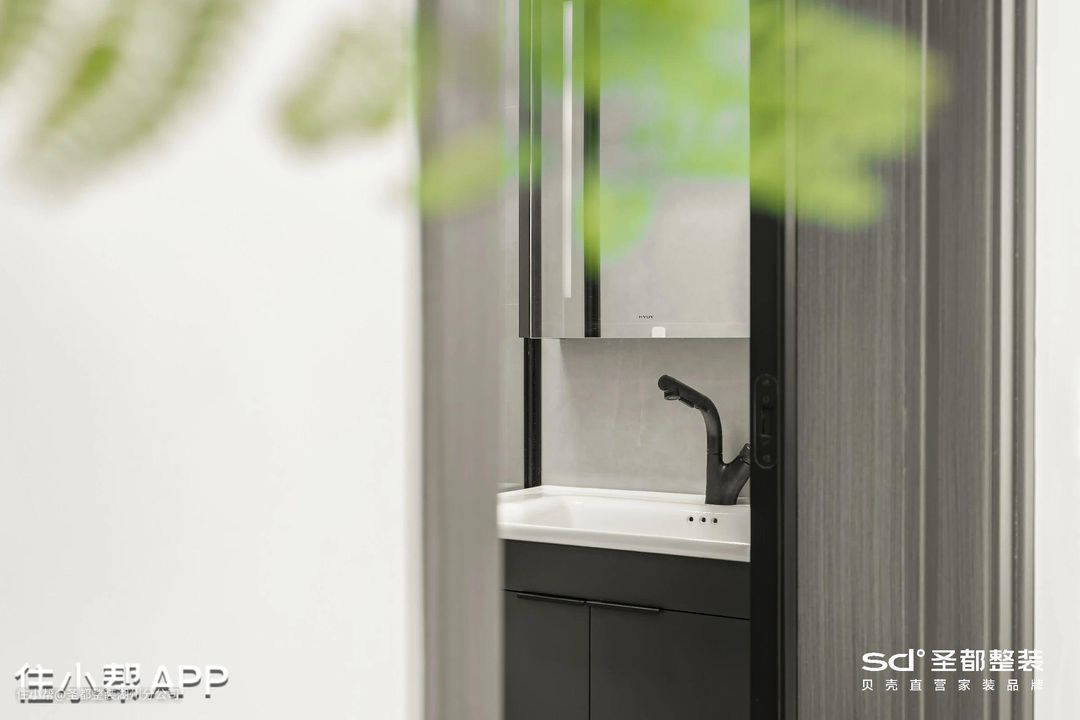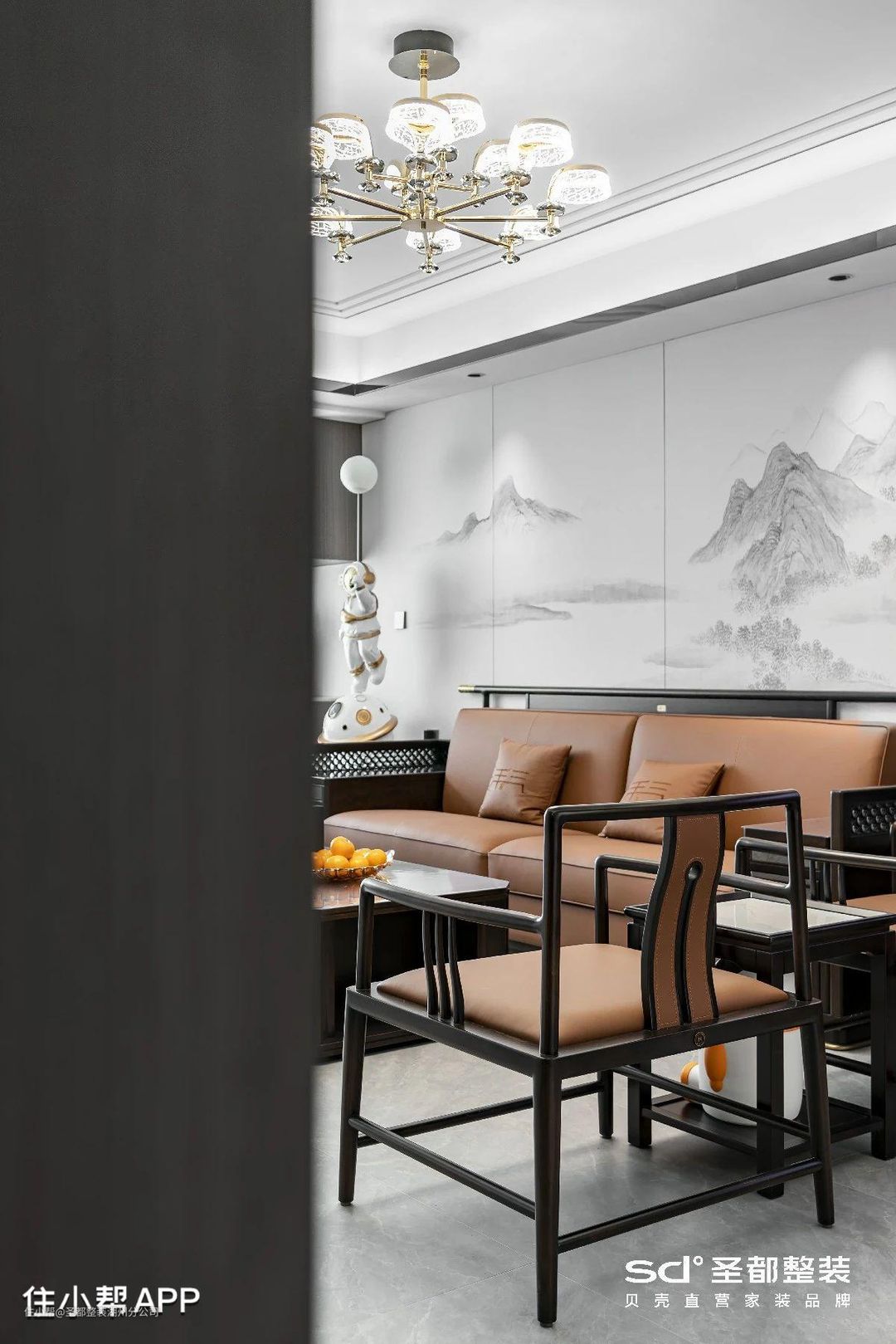 选用禅意白、典雅黑为空间主色调,并在局部中运用朱砂橘的亮色加以点缀,既不失传统文化的典雅大方,又能多一分现代的鲜活明朗。客厅阳台一体化,扩大采光面,形成舒朗开阔的空间布局。阳台设计成多功能区,实现空间0闲置:顶面规划隐形晾衣架,一键解决晾晒问题;墙面定制收纳柜,轻松扩容;临窗安置小茶室,听风品茶,人生乐事。