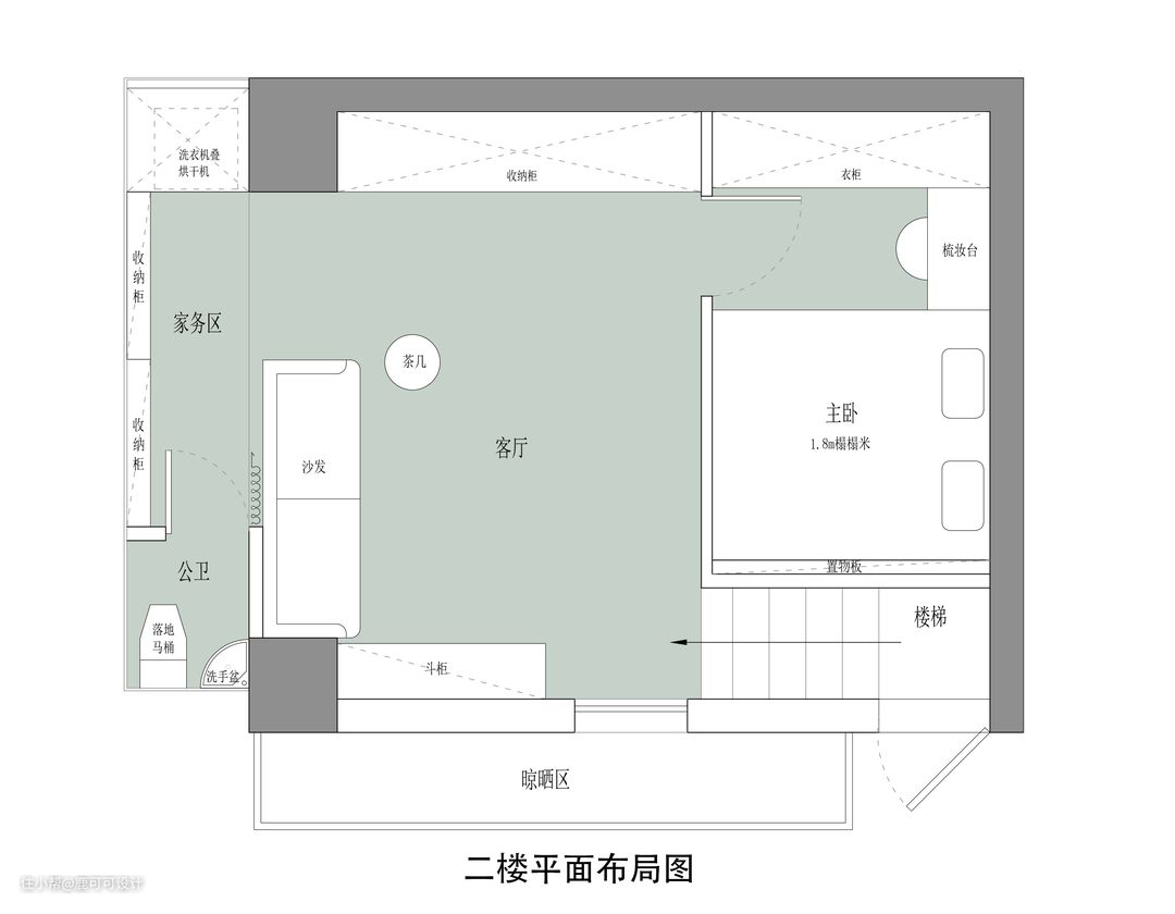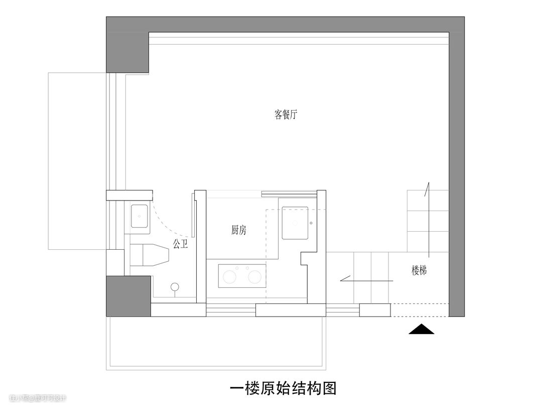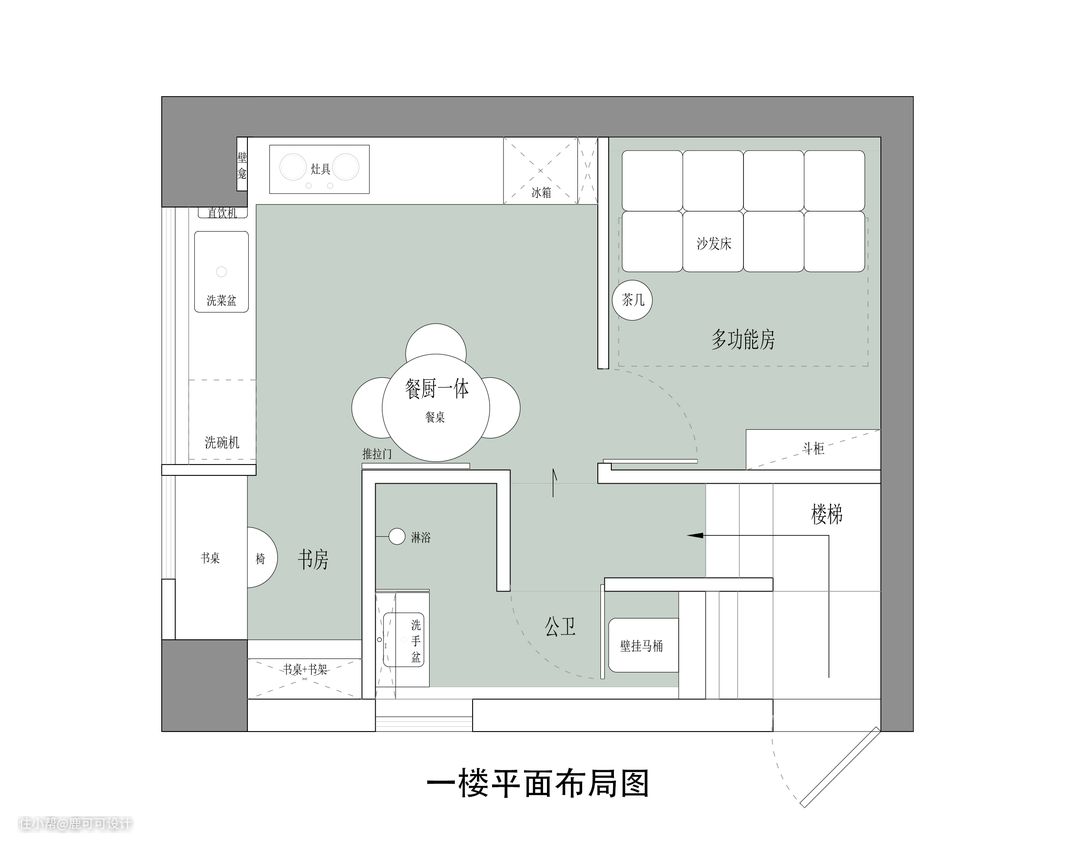 说在前面 本期作品在重新改造后变得已无一丝改前的样子,完全是两个世界了,原布局是一进门的旋转大楼梯占了很大一个空间,空间比较浪费,二楼就是两个卧室,功能相对简单,原一楼则是一个厨房与一个小洗手间,剩下一个长条形的客餐厅。整个房子的利用率很低,收纳更是少之又少。 改造后一楼二楼各一个卧室,一楼与二楼都有独立的洗手间,一楼的开放空间是厨房与餐厅,原来的洗手间位置改造成了一个独立小书房,二楼的开放空间则是一个宽敞的客厅,在整个房子里,能利用上的空间都做了收纳储物,房子的使用面积只有38㎡,整个收纳系统上就更需要多一些巧思。