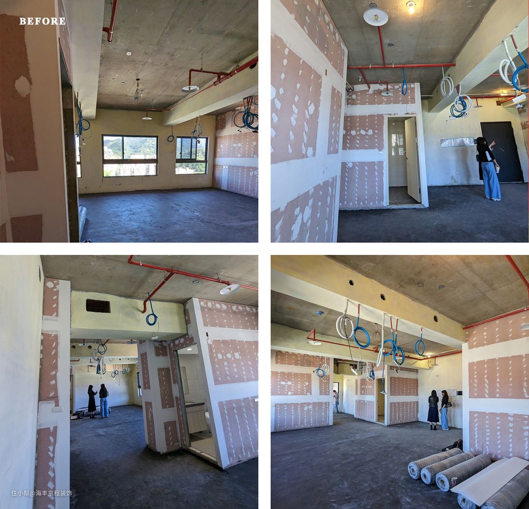 一道大梁横于电视墙,为了减少降下过多屋高,巧妙引入线板收折,施以放大空间手法于天花,并尽可能平整化四周边际,以拉升高公领域高度。