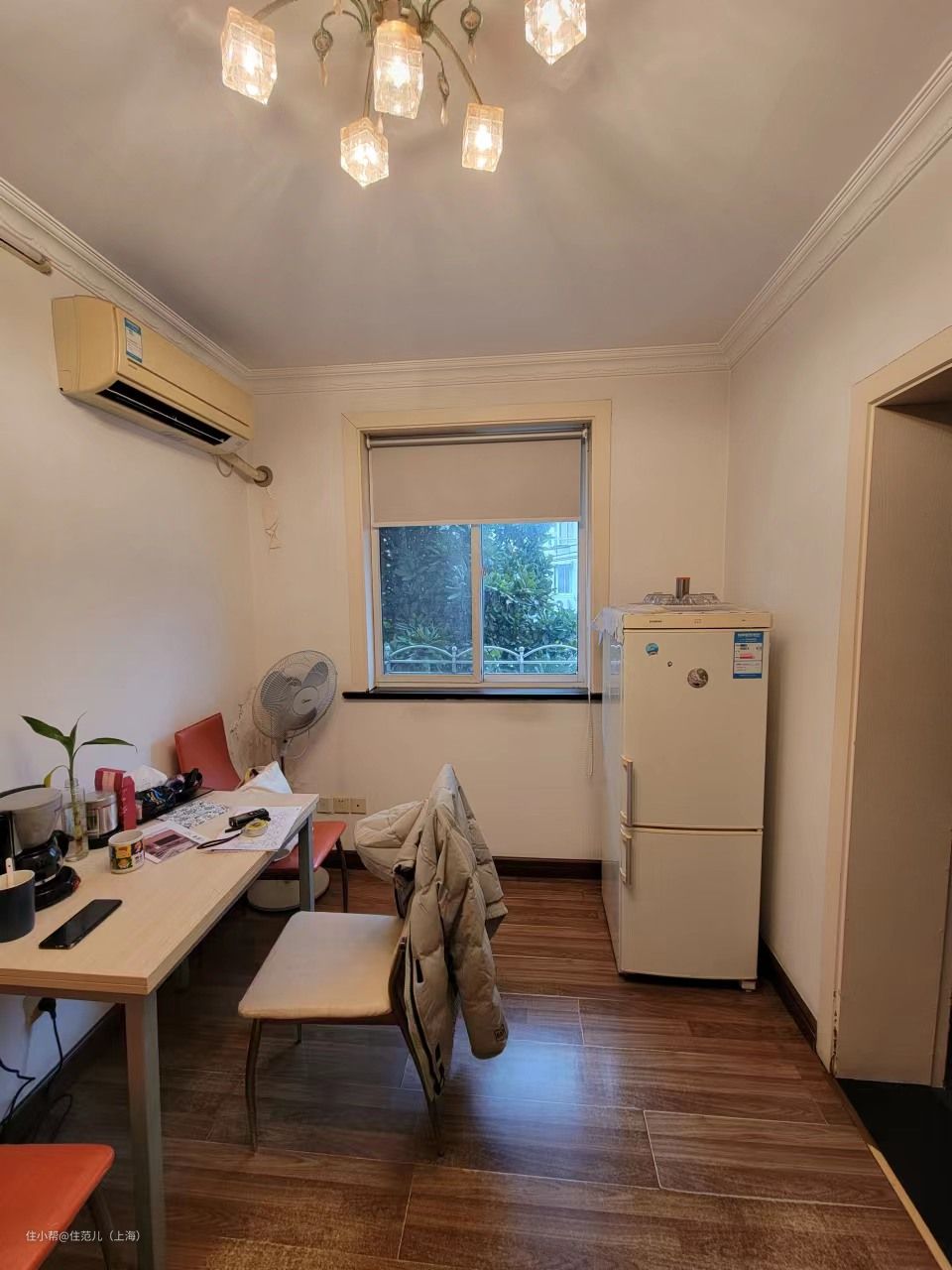 原客餐厅空间太小,不够舒适。东西多堆积在一个空间,mini的小冰箱也挤在一角,视觉感非常拥挤,动线也非常不流畅。 改造后,客餐厅通透显大。细腿岩板餐桌靠墙,留出足够空间的过道,来回通行畅通无阻。搭配2-4把单椅,亲戚朋友来了也完全足够活动。 既可以做餐区,也可以做独立的办公区,一举两得,而且旁边儿正好是窗户的位置,视野和光线俱佳。 靠墙放双人位小沙发,家里来朋友了也可以在这窝着谈天说地,包裹着会更有安全感。搭配线条简约的落地灯和角落里尺寸恰到好处的边几,氛围感一下子就来了。 黑色三层置物架作为补充收纳,容量非常足够,拿取东西也比较方便。