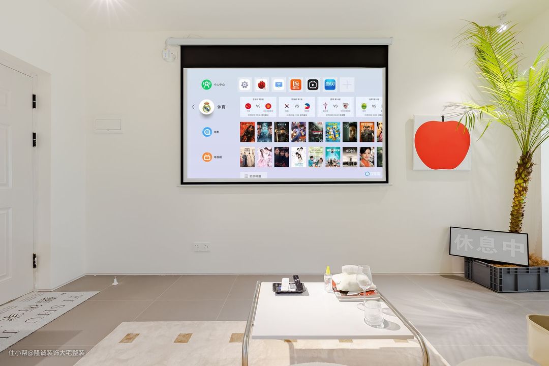 超大幕布给整体全新体验,还有阳台休闲娱乐供业主茶余饭后小憩。点缀大面积木饰面,强烈的对比效果,让空间更加层次感与冲击力。
