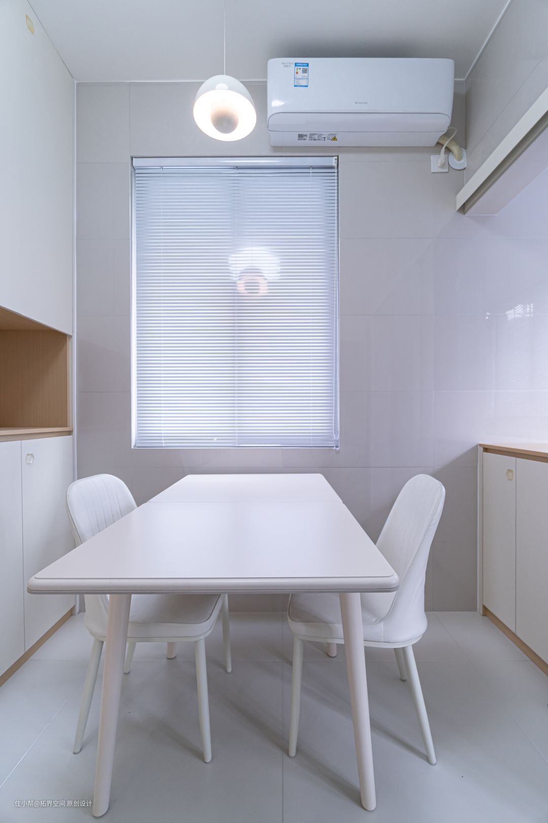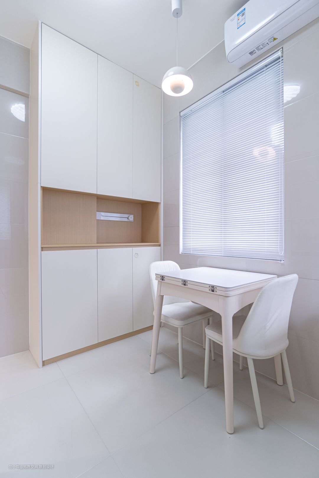 平时用餐人数不多,业主选购了一张折叠餐桌,如果有客人到来,可以延伸桌面,满足用餐需求。