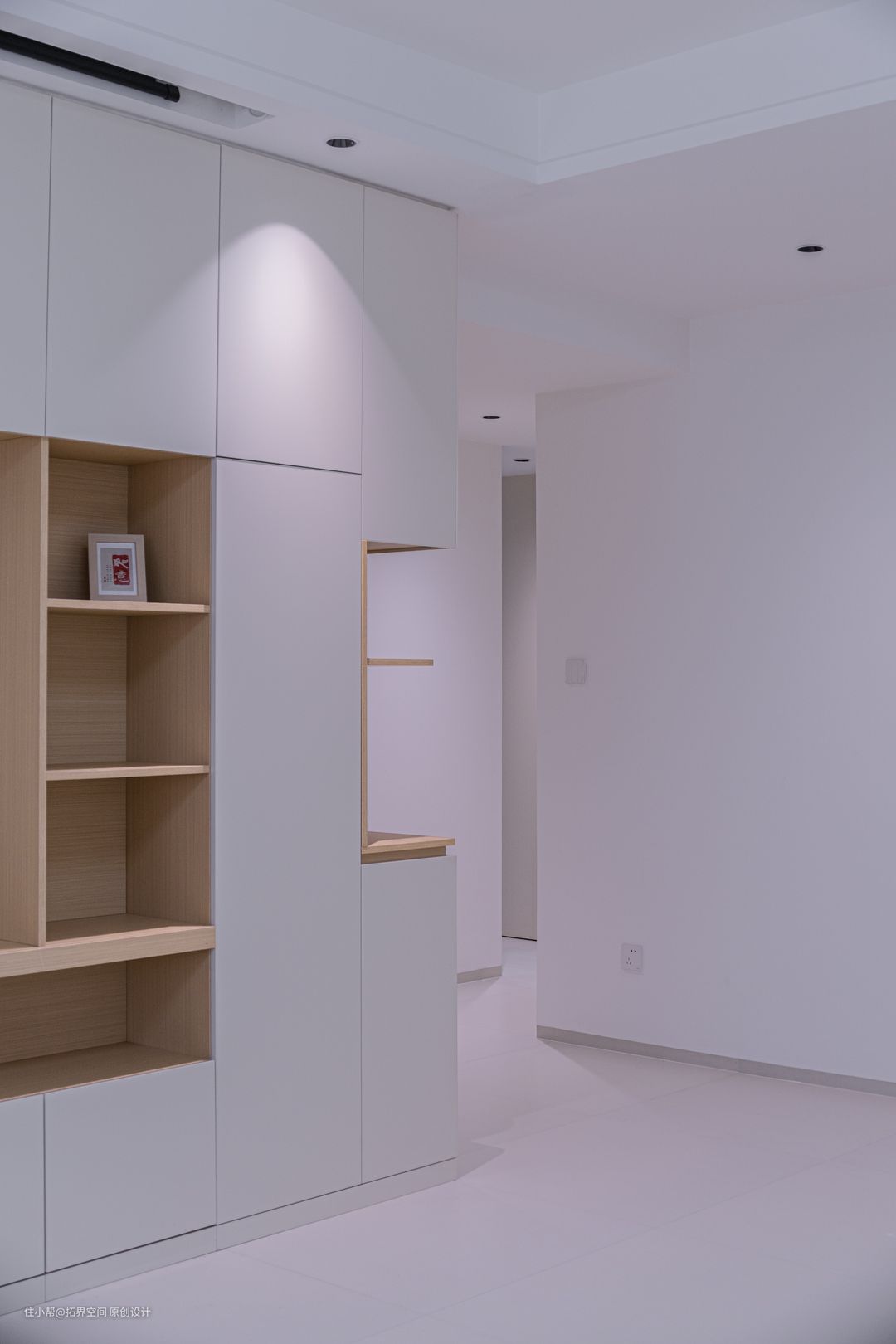 由于入户可以直接见到客厅,便定制L型的玄关柜,不仅提升了玄关的储物功能,又能增加私密性。