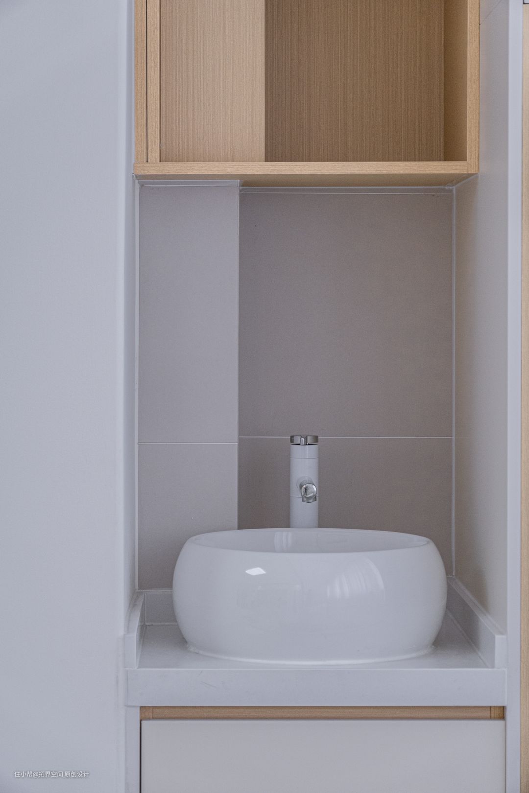 主卫利用包管和窗户之便设计了一个置物台面,让浴室空间的收纳更加灵活自由。