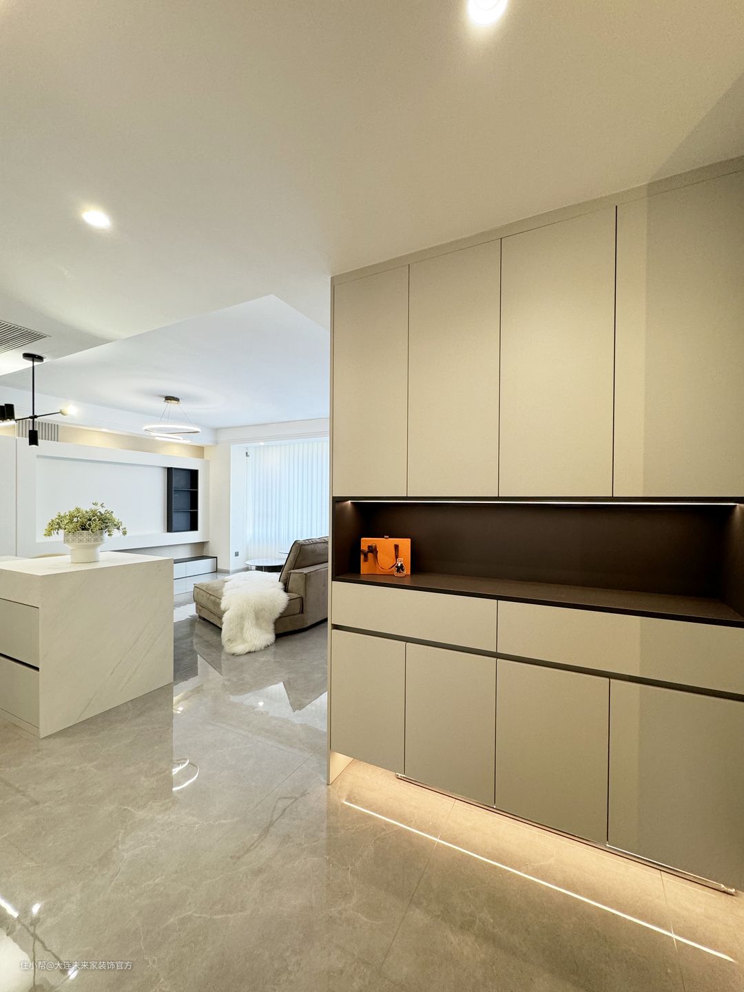 入户柜的开放格不仅可以放一些随手的物品,还可以摆放一些装饰品。安装换鞋凳,日常换鞋更舒服,在留空区域中安装嵌入式感应灯带,局部照明,视觉上增强了立体感和氛围感。柜体可以根据家里的整体效果,选择不同纹理及色调的原木色,丰富空间层次,增添原木的自然感。摒弃明装拉手,柜门立面更简洁干净,无拉手yyds!
