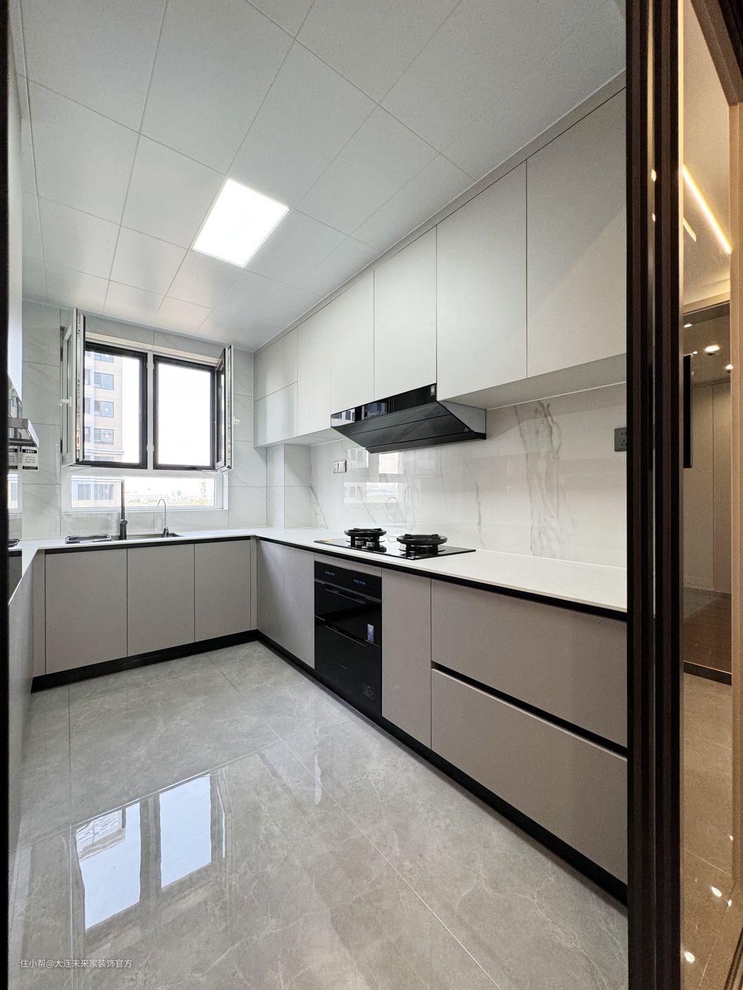 厨房呈U型布局,不仅保证了舒适的操作空间,还使得空间利用得到最大化,做高柜增加收纳面积,保持台面上干净整洁。灰咖配色干净耐看,给人以质感考究的简雅印象。