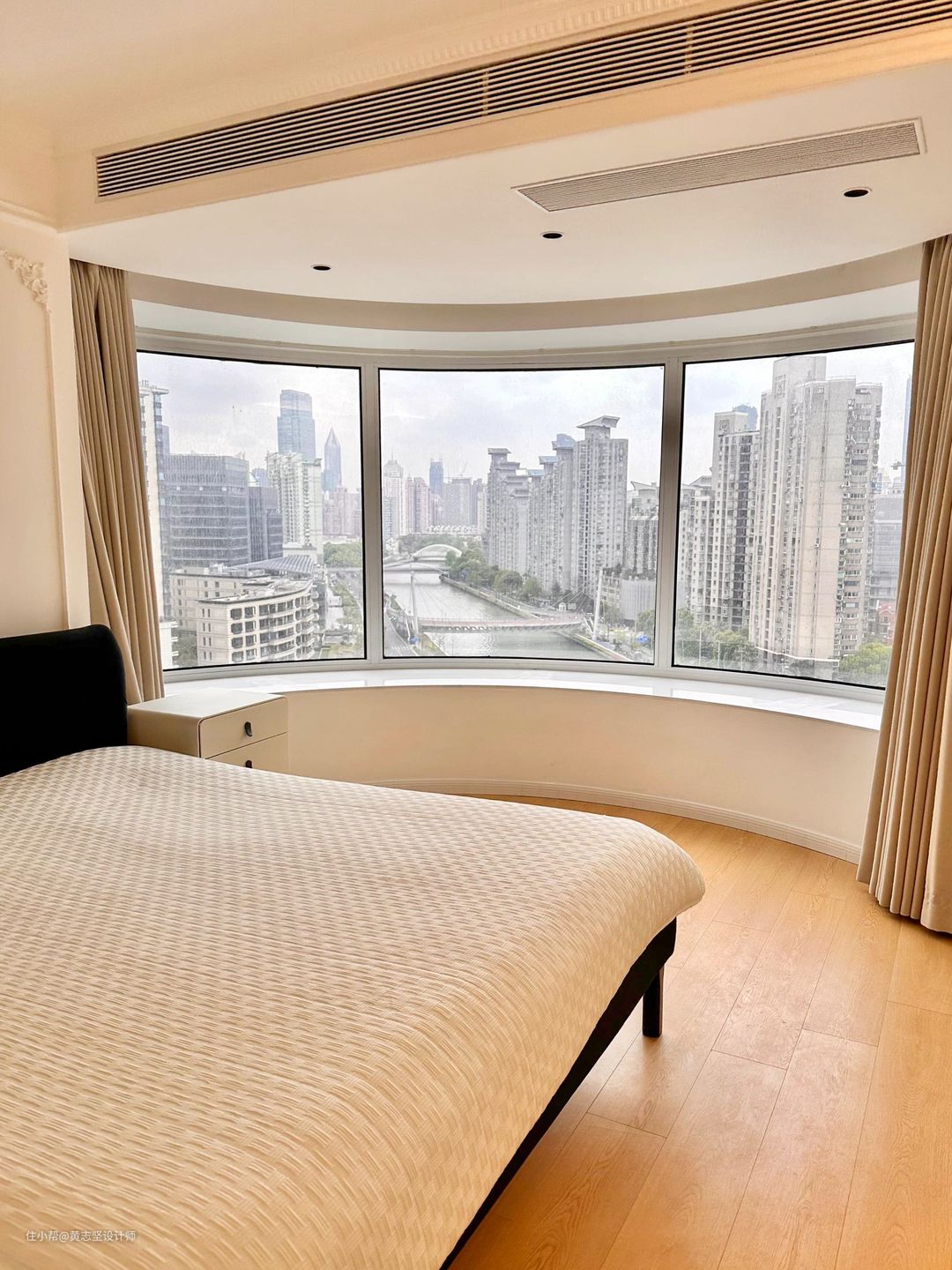 🌿次卧的格局不是方正的,但还算面积够大,设计一个弧形阳台,光线非常好,看看窗外的风景也是非常nice的