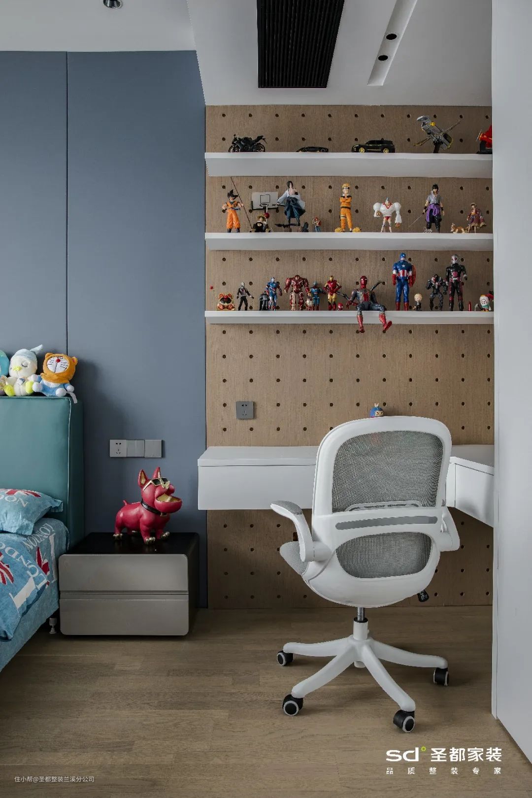 由于小主人喜欢收藏手办,衣柜转角处设计了手办展示区,既是对宝贝兴趣的尊重,又能成为一道亮丽的风景线。