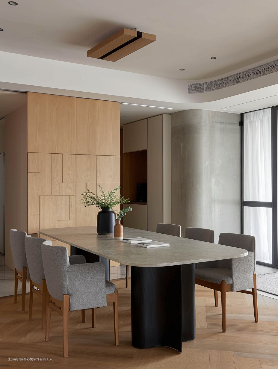 咱这餐厅呀,木地板踩上可舒服哩。光线也好哩很,亮堂堂哩。还有那中央空调,夏天吃饭也不热哩慌。再摆上一盆绿植,可就有生机哩很哩。
