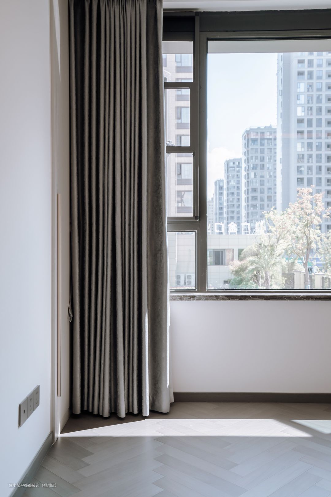 次卧是极简的搭配,空间以纯洁的白色作为主要色调,仿佛一位画家在空白画布上任意发挥,原木元素为这个空间注入活力,在视觉上带来舒适和享受。复古的羽毛吊灯和碎花窗帘让空间看起来不单调,隐隐透着精致氛围。