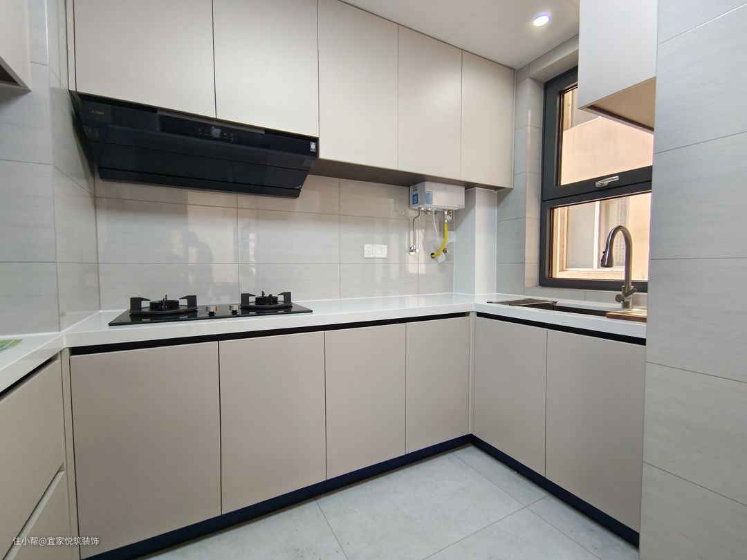 厨房 整体橱柜以平面双饰面柜门为主 。 这样后期方便打理。 样式简约不过时 。颜色以暖灰色为主 显得更加温馨。瓷砖还是选用亮面砖为主,更好的方便打理