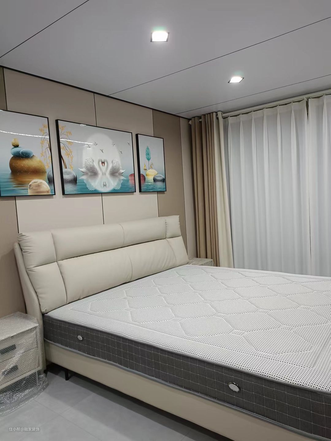 白色是一种经典且百搭的选择,与原木色床搭配,可以营造出简约、清新的氛围。这种搭配适合各种风格的家居