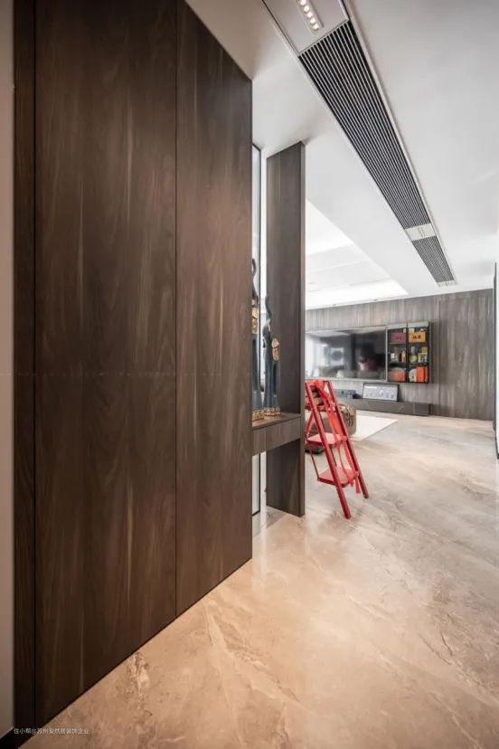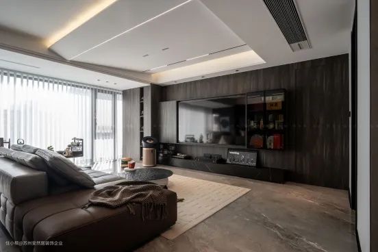 🆕又见梁!这家对梁的处理也很优秀,以梁为最低点,两边都斜向削弱梁的存在,再配上灯带就能给人带来一种轻盈感,空间不显压抑,你学会了吗? 🆕这个隐形门太成功!要是不说,谁能知道电视背景墙后大有乾坤,藏下了主卧套房呢? 🆕既然要贴合客厅的敞开大气感,那沙发的选择也不能太突兀,这款无扶手的劳伦斯沙发就是最优解。沙发线条干净利落,座包圆润微鼓,去扶手的设计又增添一份大气感,适配度满分!