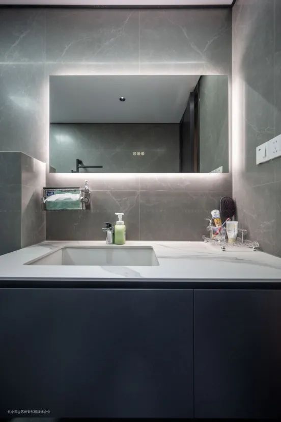 🆕这个卫生间有点高级啊!镜子加灯带,极窄的岩板台面设计啥的都是基础调调,无卫生死角的壁挂式坐便器,其实还有一个隐藏好处:预埋进去的水箱顶面,天然就是一个置物台,东方木香总会带来更好的香氛体验~
