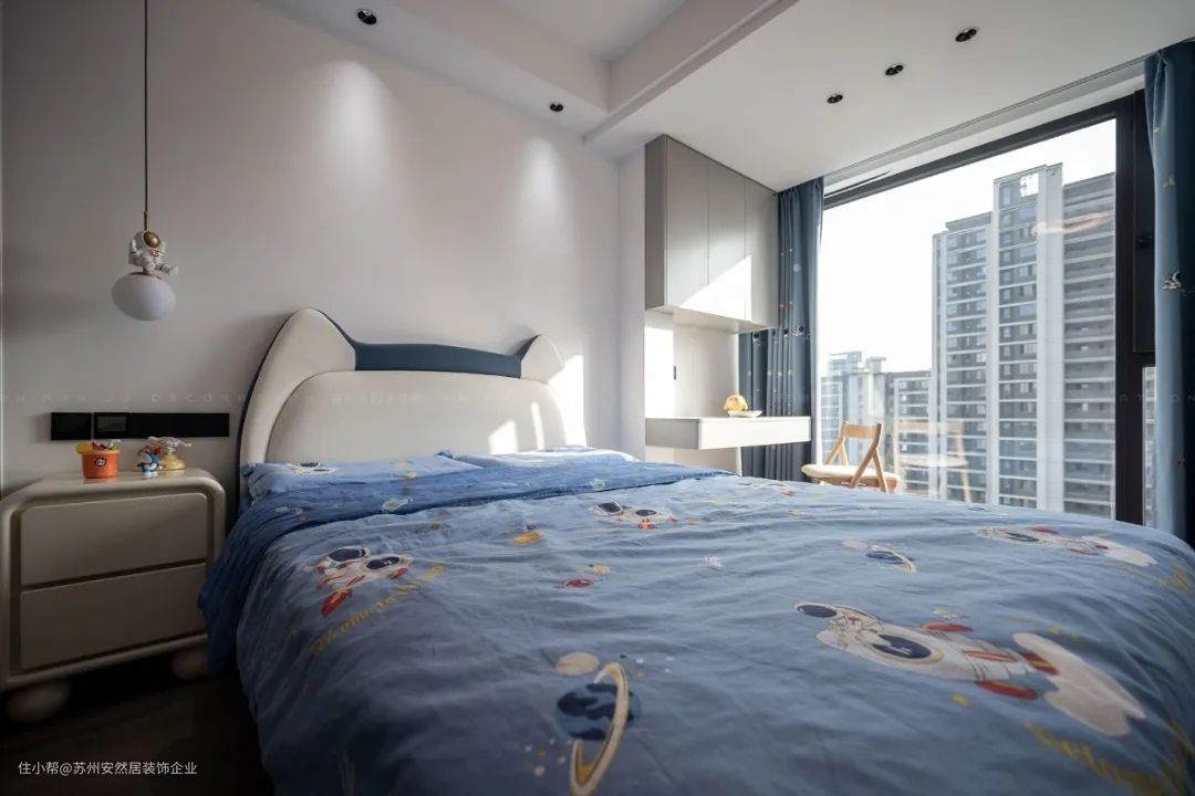 🆕拍摄的时候,小朋友说:我房间是有主题的,叫:太空人,果然,从灯具到床单,都是他喜欢的元素,阳台纳入进来,功能性也更加完善。希望小朋友在这套专属定制的房间,成绩优异、平安健康吧~