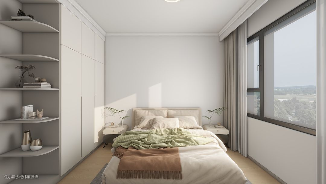 主卧依旧延续了简约风,将一种干净纯粹的空间氛围打造了出来,看起来优雅又清新。主卧与衣帽间一个空间拿取衣物更方便。 采用无主灯设计合适的搭配灯光让家具更显得高级,在视觉上也会放大空间,让空间更立体,扩大视觉效果。墙面的线性勾勒增加了空间的质感和线条美感,细腻的线条让空间简约却不单调。
