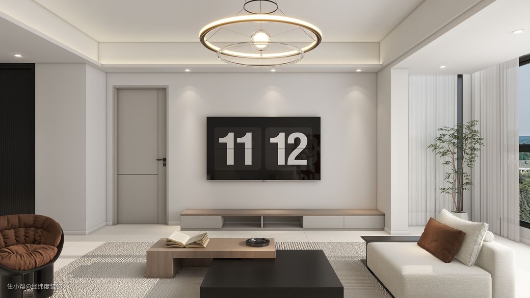 电视背景墙简约大方,留白让光阴赋予他无限想象。主灯增加层次氛围感,让人随心所欲,自由热情的生活。阳台也纳入客厅休闲区的一部分,这样的设计让餐客厅层次分明,一览无余。 阳台的落地大玻璃窗,让人随时能够以最佳视角欣赏到外面四季变幻的景色。 现代简约风不仅可以塑造一个舒适和实用的生活环境,还可以为人们带来良好的身心状态。当你回家时,你将会拥有一种欢迎、放松的感觉,让你在一个真正属于自己的空间里获得自由和平静。