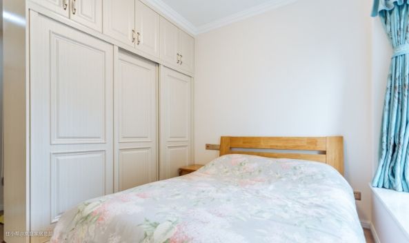 卧室的面积都不是特别大,于是舍弃了一侧的床头柜,节省空间。加上衣柜也是特意做的推拉门设计,开关门不会拥挤。 比起公区来首,卧室的设计明显就简单得多,舍弃了复杂的背景墙设计,以留白为主,加入实木家具,给卧室带来大自然的清新治愈气息,有利于睡眠。