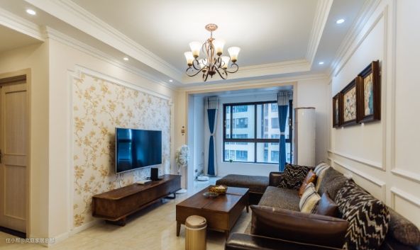 客厅一来就把阳台打通,这样客餐厅看上去会显得更开阔一点。整个家的设计就是在传统欧式的基础上做了简化,但依旧保留了经典的欧式风特色。 比如石膏护墙板和碎花墙纸拼接的设计,暖色调的组合,让家更具温馨舒适的氛围。加上立体的石膏线条,也丰富了我们的视觉效果。 在浅色调的空间里,加入了大量深色的家具,一深一浅中,突出层次感,也不会觉得单调。实木厚重的家具,让空间更具高端奢华的气质。
