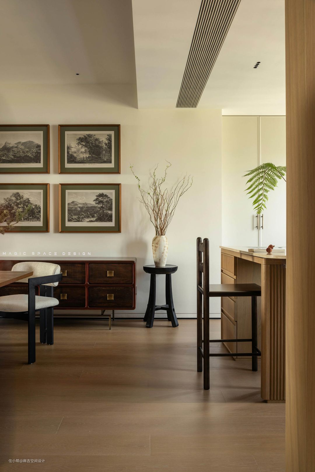 “设计不仅仅是一种视觉的享受,更是一种生活的哲学。”主卧的陶土红背景纯粹无瑕,烟熏橡木的床头回溯了贯穿的温情,挂画更是别出心裁地复刻丝绸纹路,每个细节都符合居住者对生活的期望。
