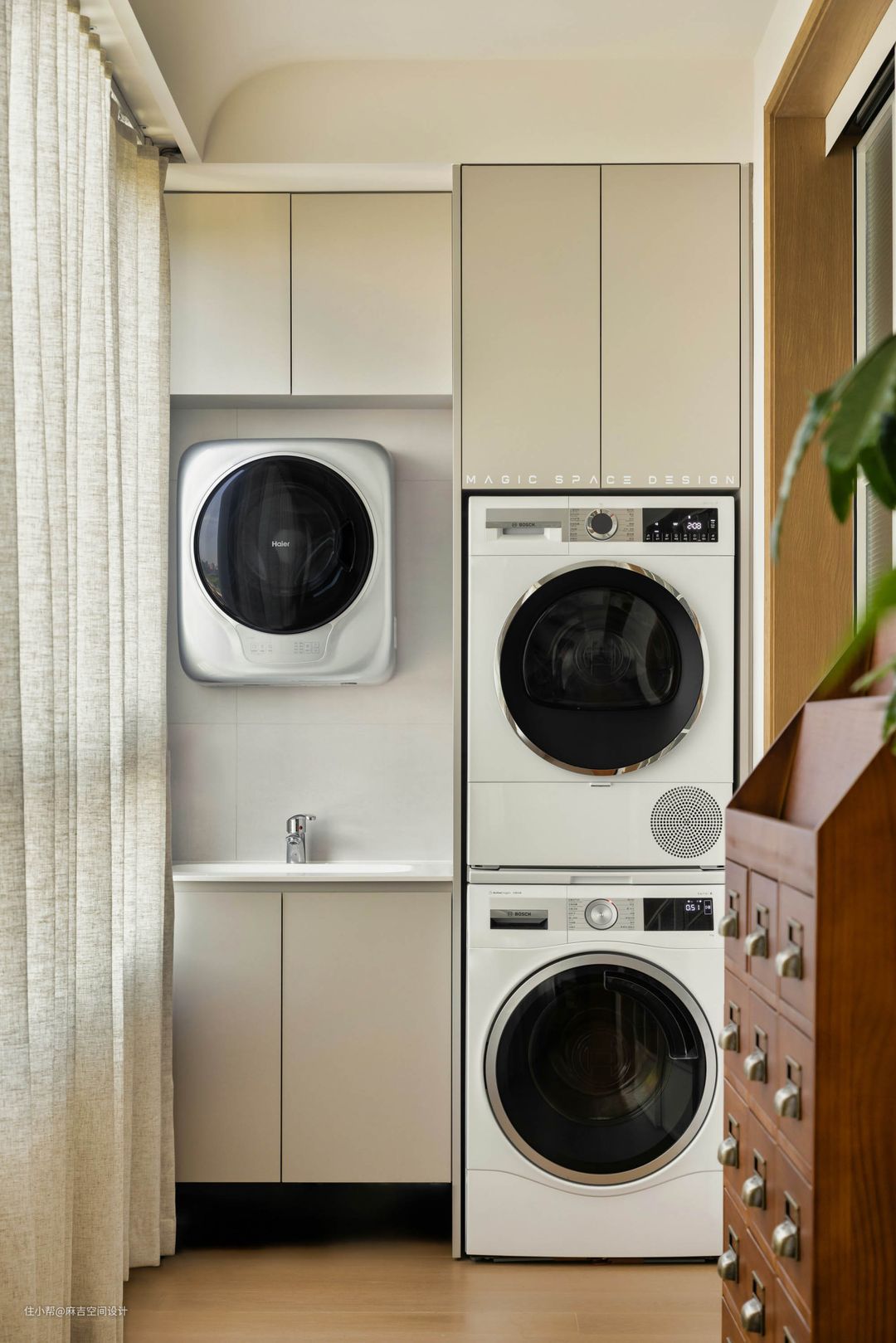 阳台,为“靠近四季,独享悠闲”的理想提供有利条件,增添古朴雅致的陈设,将空间之趣娓娓道来。考量侧壁尺度,安置合适的电器,造就小而美的清洁区。