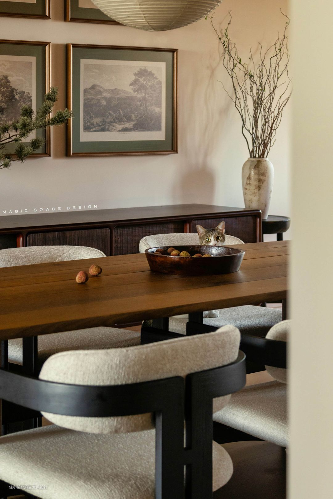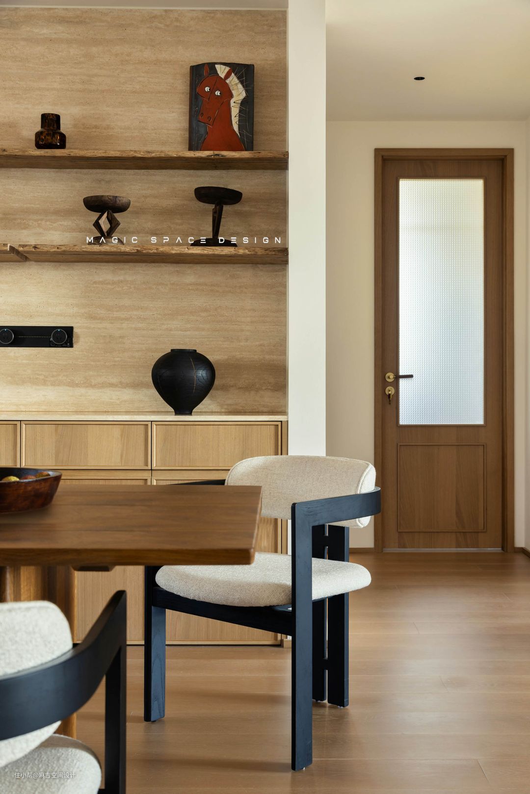 “设计不仅仅是一种视觉的享受,更是一种生活的哲学。”主卧的陶土红背景纯粹无瑕,烟熏橡木的床头回溯了贯穿的温情,挂画更是别出心裁地复刻丝绸纹路,每个细节都符合居住者对生活的期望。