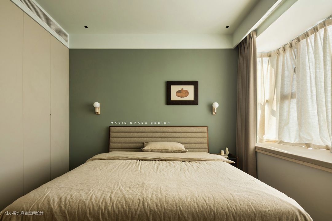 老人房,以绿色调作为视觉主语,点缀寓意吉祥的小画,摆置古雅柜体,壁灯则定制了洞石石基,营造出宁静舒适的氛围。随着时间流逝,空间逐渐沉淀出更多的故事和情感。