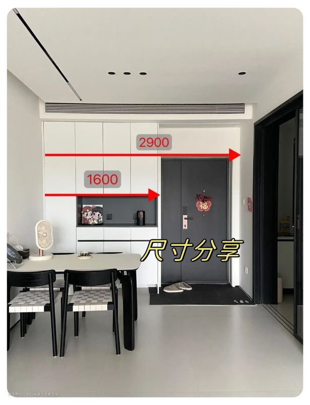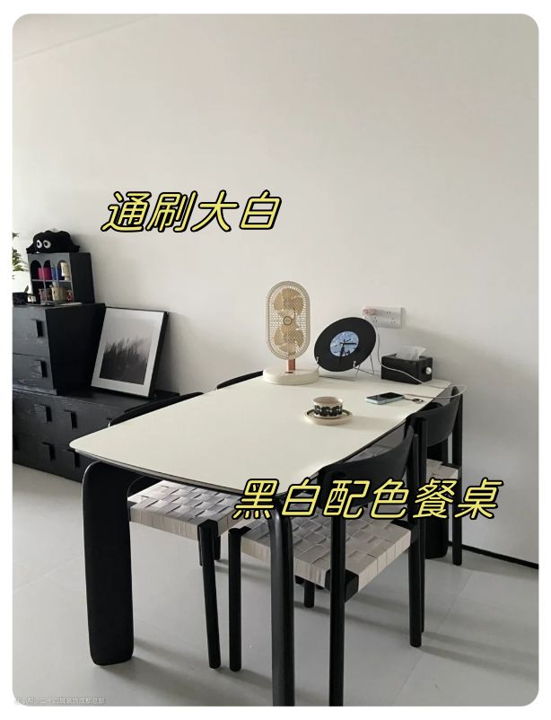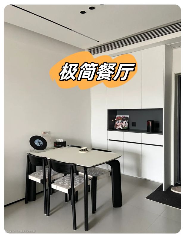 餐厅和客厅一体化的设计,选择柔光砖通铺,既显得空间宽敞明亮,又能增强整体的装修质感。入户柜设计得十分贴心,使用一扇到顶的柜门,完美收纳日常生活用品和当季鞋子,非常实用。 考虑到实用性和美观性,我们选择了一款岩板台面和实木桌腿的餐桌。岩板台面易于清洁且耐用,实木桌腿则增强了餐桌的稳固性,保证了用餐的安全。 墙面选择了清新淡雅的菱花白乳胶漆,非常适合现代简约风格的装修。这样的颜色搭配既符合整体装修风格,又能凸显出餐厅的空间感。