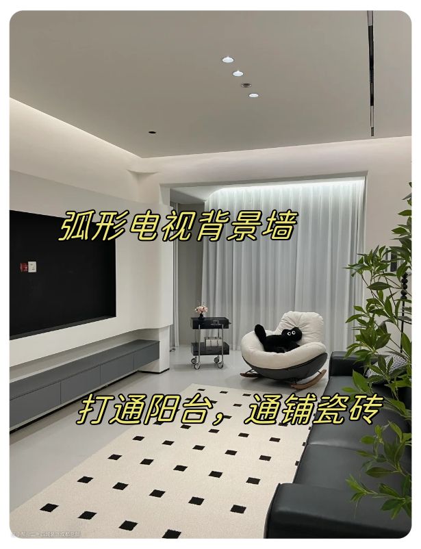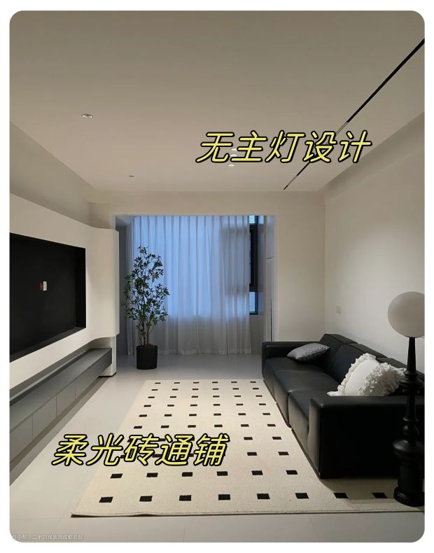 客厅整体风格以黑白灰为主,用最少的装饰元素打造出最简洁、最纯粹的空间。同时,我们注重细节处理,每一个细节都经过精心设计,以营造出高品质的生活氛围。 为了给空间带来更为宽敞的感觉,选择75X150的地砖进行通铺。体现出空间的整体质感,又能够打破单一的色彩,带来更为丰富的视觉效果。 全屋通刷菱花白乳胶漆,这种颜色能够营造出一种简约而高级的氛围,与黑白灰极简风的整体风格相得益彰。打通了客厅阳台,这不仅增加了室内的空间感,也使得整个空间显得更加通透。