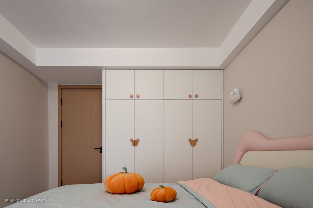 儿童房设计也兼顾到了美学与功能,睡眠区+学习区+收纳区的布局紧凑有序,为孩子提供了一个温馨舒适的成长空间。