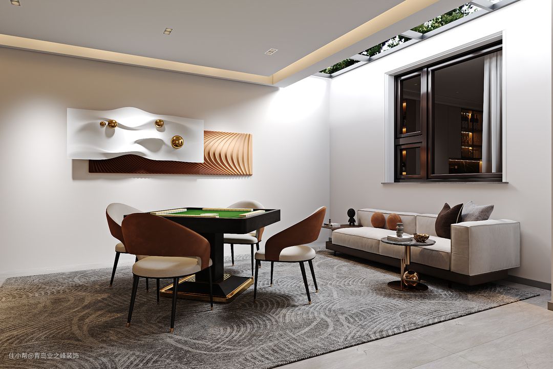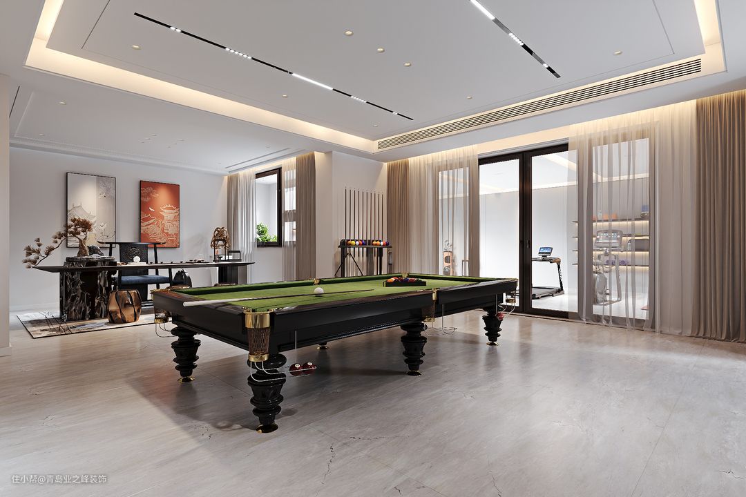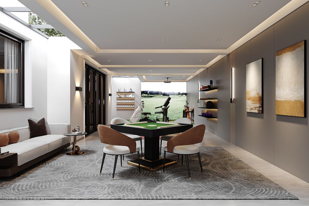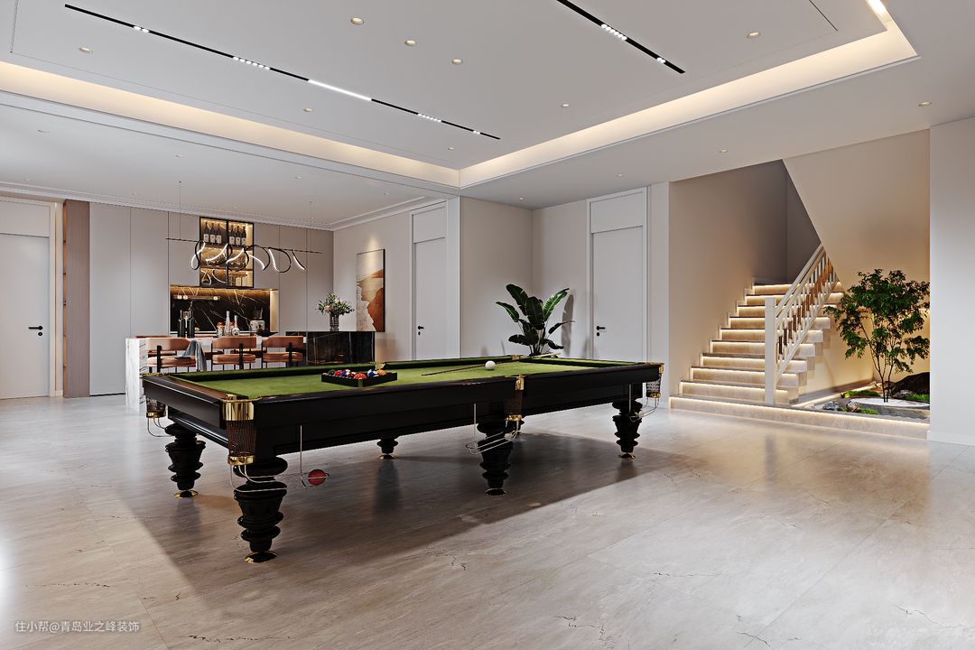 地下室空间以现代风的基调,吊顶四周加入灯带,还在天花中间加入了筒灯装饰。负层采光较差,所以装修底色选择了白色,白色灯光与暖色灯光交替使用,并采用绿植来增添自然的气息。整体风格自然舒适,且具有现代化时尚气息,彰显主人的品味与时尚内涵。